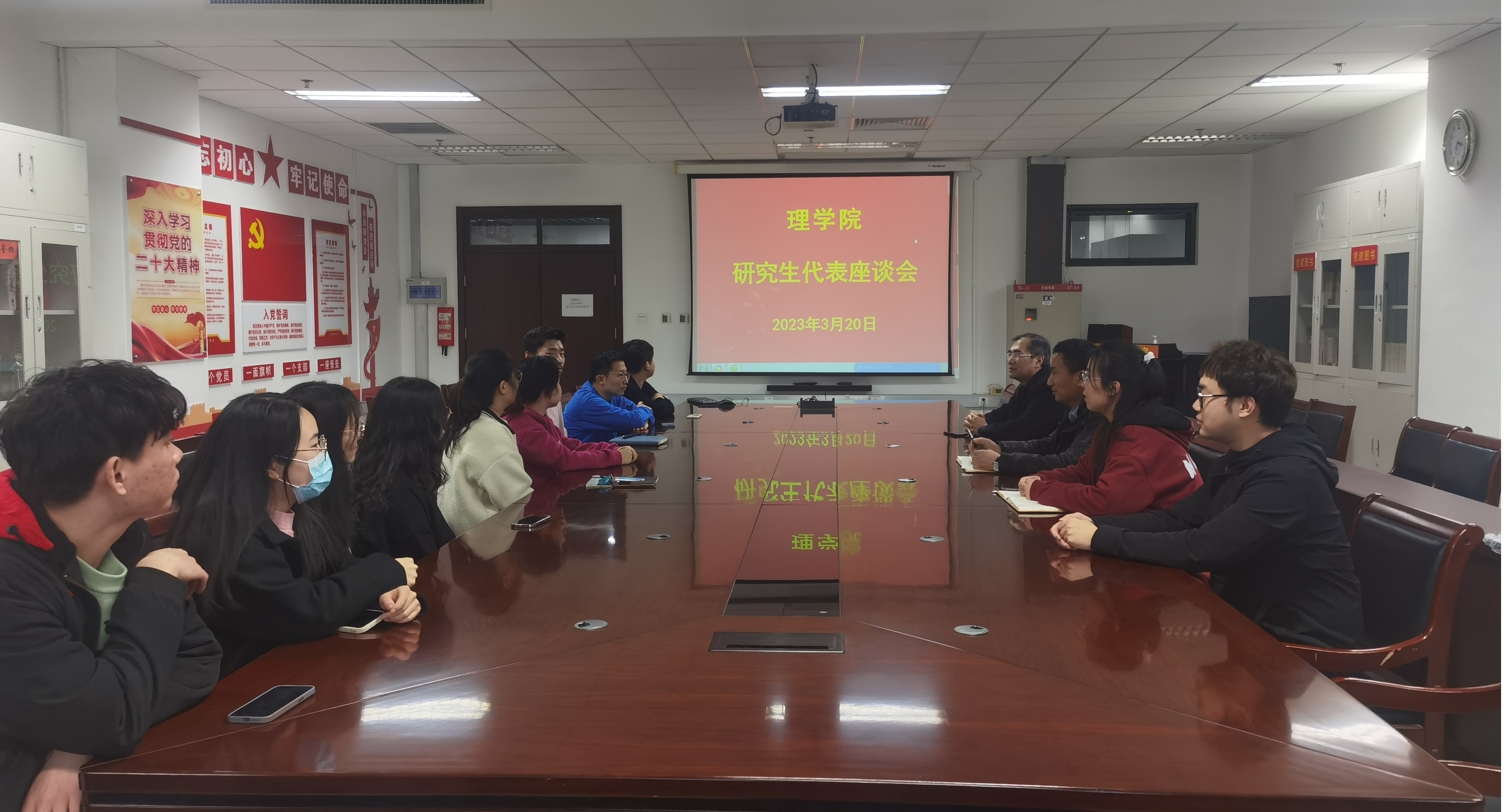 为全面了解理学院研究生思想动态,解决研究生在科研、学习和生活中遇到的一些问题,3月20日下午学院召开研究生代表座谈会。理学院院长李冱岸、党委副书记贺映勇和研究生辅导员宋丽莎参加座谈会。会上,各年级研究生代表们畅所欲言。同学们分享了自己与其他同学在学校的学习、科研经历和感受,以及当前生活遇到的一些困难等,并对学院在教学、科研、学生管理、后勤服务等提出了一些合理化意见和建议。针对同学们提出的问题和建议...
