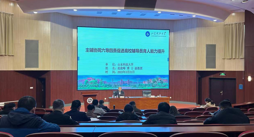 3月21日下午,学生工作部在文化会堂举办了第一期辅导员发展论坛。2022年全国最美高校辅导员、第十二届高校辅导员年度人物、山东科技大学范俊峰老师应邀作了专题报告。学工部部长孙宗瑞主持论坛,学工部、校团委全体干部和学院副书记、辅导员参加。范俊峰老师以“主辅协同六导四员促进高校辅导员育人能力提升”为题,从职业、理念、方法的角度提出问题,深入浅出地讲解了辅导员角色定位、自身贡献、工作方法、发展路径四个方面的...