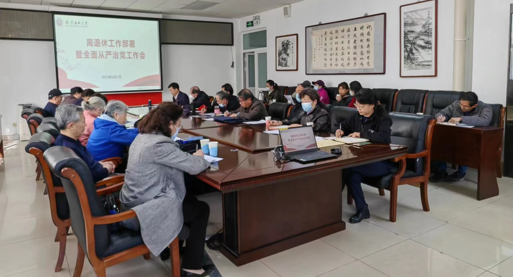 4月7日上午,离退休党委召开会议,总结部署离退休工作,专题部署全面从严治党工作。离退休党委委员、党支部书记、党支部委员、工作人员等近30人参加了会议。党委书记赵永兵传达了北京教育系统2023年度离退休干部工作会议精神和学校2023年工作部署,总结了2022年离退休工作以及取得的各项成绩,对老同志们一如既往的关心和支持表示感谢。赵永兵从五个方面对2023年离退休工作进行了部署,具体包括15个工作要点和41项具体任务。一...