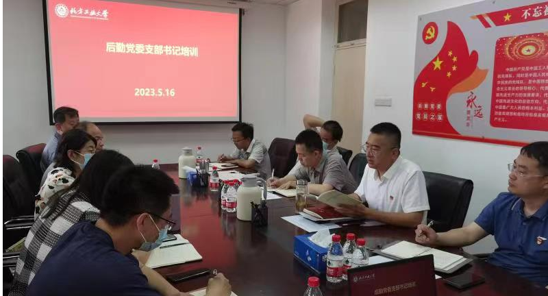 为深入学习贯彻党的二十大精神,扎实开展学习贯彻习近平新时代中国特色社会主义思想主题教育,进一步推进后勤基层党支部工作标准化、规范化建设,5月16日,后勤党委在一公寓114会议室召开党支部书记培训会。后勤党委委员、处级领导干部、党支部书记和党务秘书参加培训。培训会由后勤党委书记郑泰平主持。会议首先听取各支部书记关于支部建设形势分析,开展主题教育学习、党员培养发展、“三重一大”落实等工作情况。会议组织学...