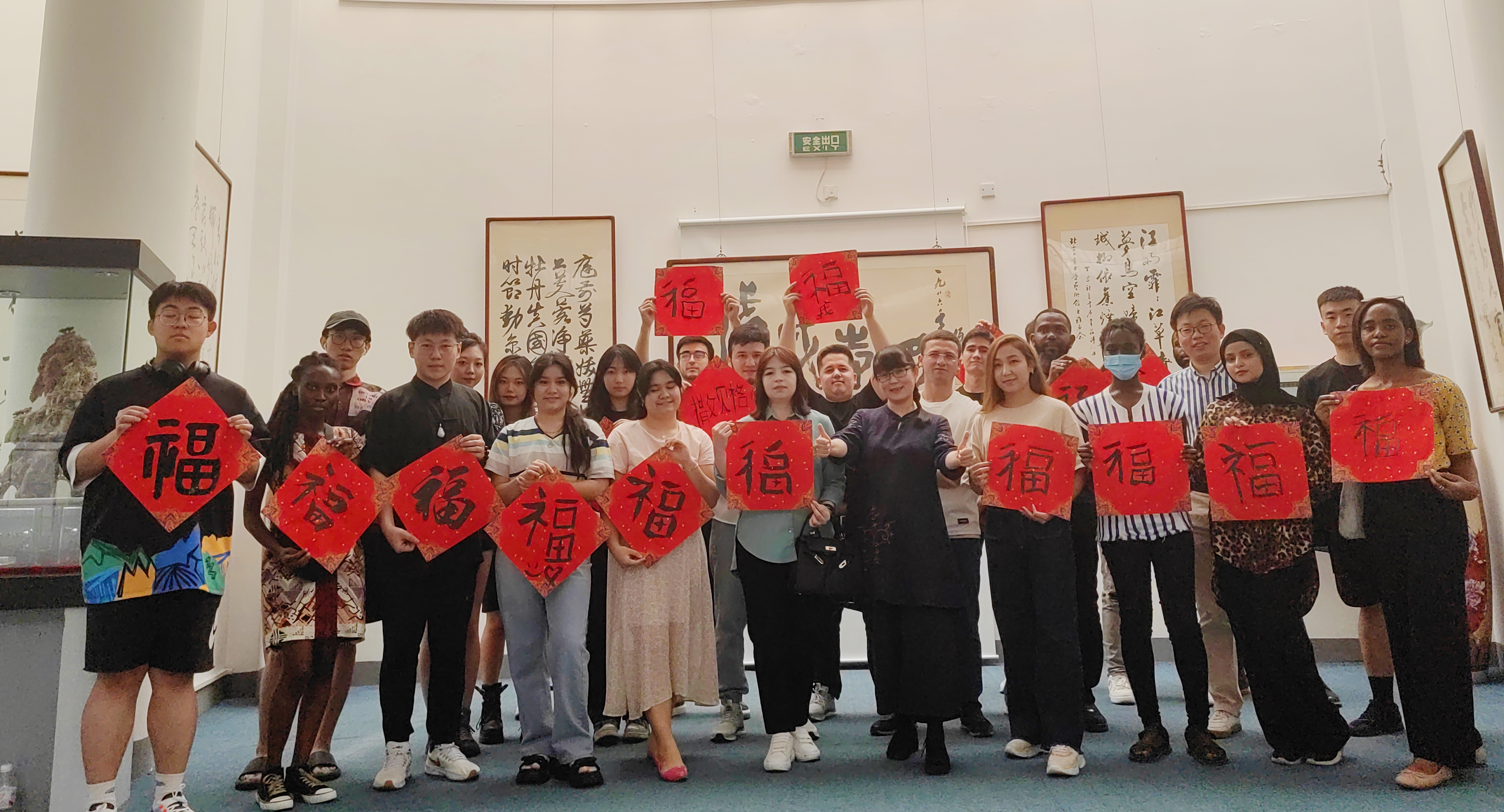 2023年5月18日是第47个国际博物馆日。当天下午,Beat365艺术馆接待了来自乌兹别克斯坦、刚果金、土库曼斯坦、苏里南、坦桑尼亚等国家的二十余名留学生参观《馆藏精品展》,并现场与艺术馆工作坊的同学们进行福字书写交流,深度体验中国书法的魅力。艺术馆刘琳老师全英文讲解艺术馆内展览的书法、国画、陶瓷和民间工艺品等馆藏精品。美轮美奂的作品引起留学生们的阵阵欢呼赞叹!他们对作品充满了好奇与兴奋,沉浸在中国传统文化的魅...