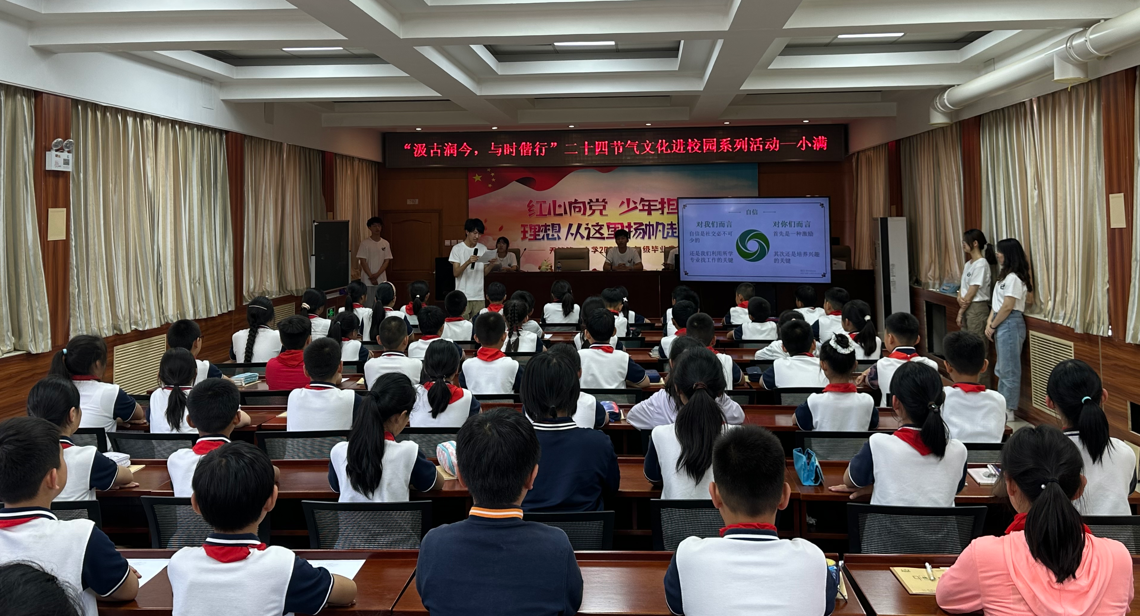 为深化校地合作,弘扬中华优秀传统文化,由机械与材料工程学院团委书记李旭带队,学院大学生志愿者赴天竺镇中心小学与天竺镇团委联合开展了“汲古润今,与时偕行”二十四节气文化进校园系列活动,共计70余名学生参加。机材学院学生通过PPT演示、播放视频等方式,深入浅出地介绍了文化自信的内涵和二十四节气的构成。重点围绕起源、气象、饮食、风俗等民俗文化为孩子们介绍了小满节气,让大家深入了解了小满的习俗文化,开启了二十四...