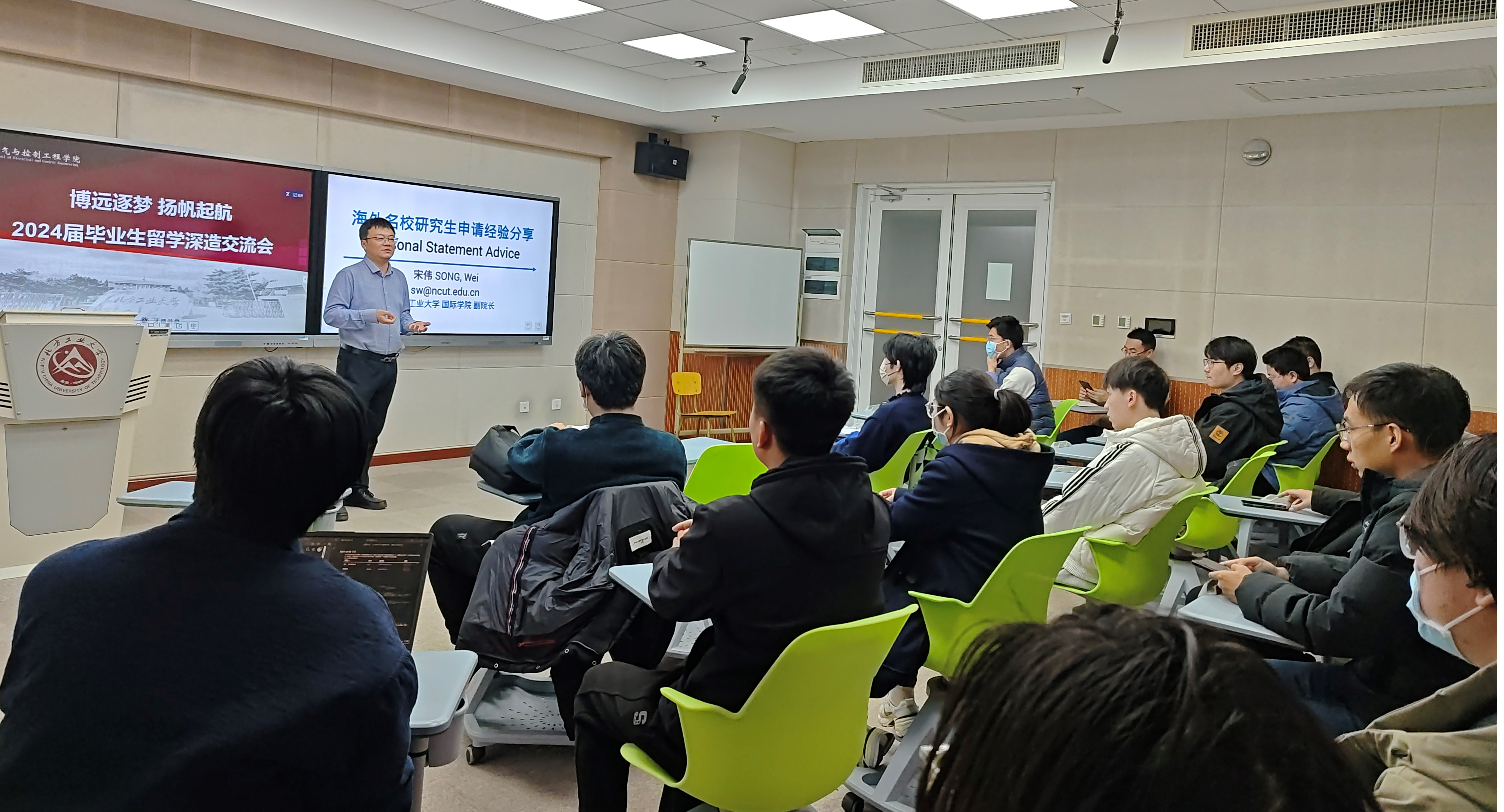 为拓宽国际化视野,解答海外深造疑惑,引导学生树立尽早规划,12月8日,电气与控制工程学院在智慧教室234举办2024届毕业生留学深造交流会。此次会议邀请国际学院副院长宋伟进行交流分享,学院党委副书记王磊、研究生辅导员金鹏、本科生辅导员范玥及近20名海外深造意向生参加会议。宋老师在会前询问学生关于留学深造的相关问题,带着问题出发,以往届学生申请海外硕博的成功案例及个人陈述写作时的注意事项解答学生实际问题,并...