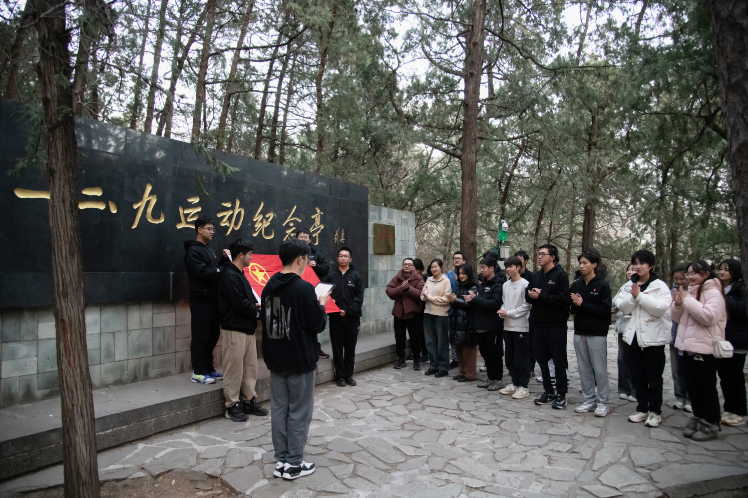 为进一步强化思想引领,用切身实践加强爱国主义教育,厚植家国情怀。12月8日,电控学院团委书记田儒基、团委副书记范玥、秋季新发展团员和团委学生会学生代表前往“一二·九”运动纪念亭举办2023年秋季新发展团员入团仪式。在“一二·九”运动纪念亭前,田儒基老师与范玥老师一同为新发展团员佩戴团徽,由杨成俊带领新发展团员进行入团宣誓、老团员们重温入团誓词。团员代表张昀暄发言。他以青年担当为关键词,讲述了他对青年团员...