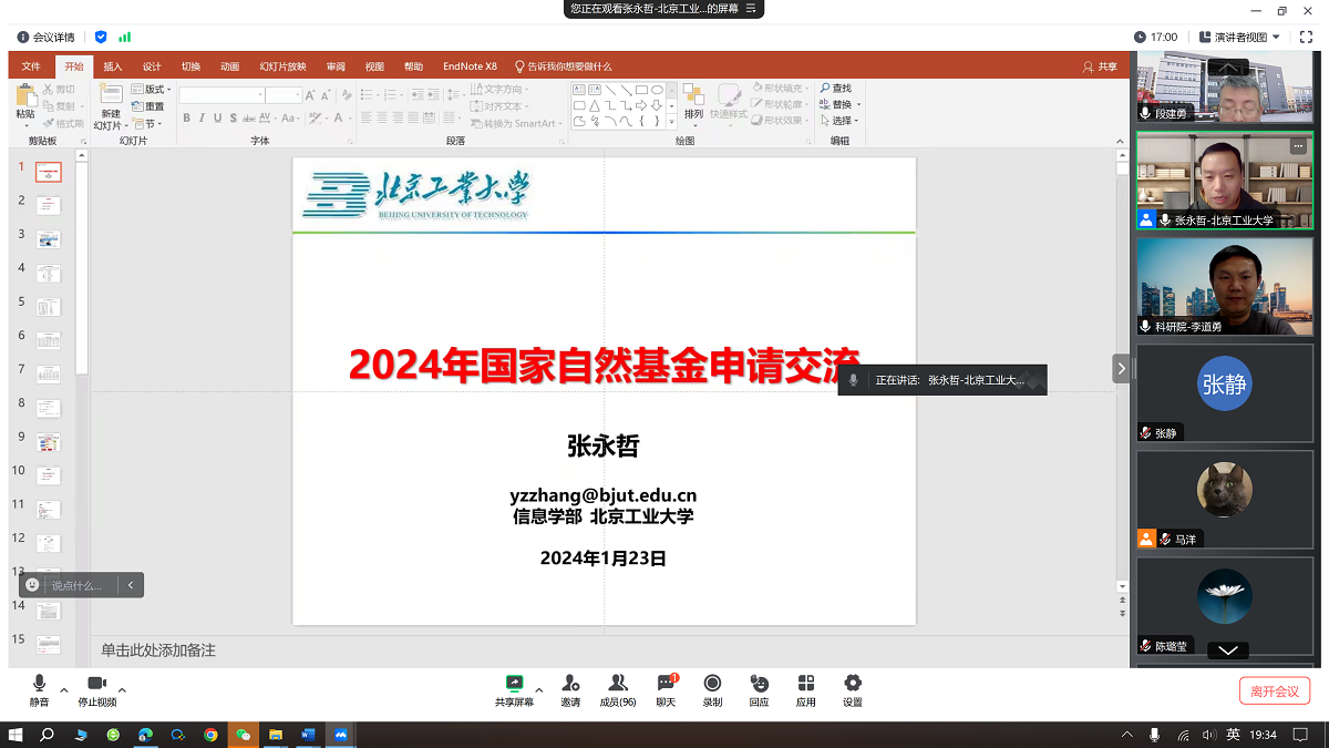 在2024年度国家自然科学基金即将申报之际,信息学院于1月23日召开基金申报经验交流会。本次会议采用线上的方式,特别邀请北京工业大学张永哲教授作了国家自然科学基金申报交流报告,共有100余名教师参加了会议,会议由段建勇教授主持。张教授以自己多年的申请经验,全面深入地分析了各部分内容的撰写思路、方法与注意事项。从指南说起,从科学问题凝练、立项依据、研究基础等方面强调了申请书撰写过程中需要引起重视的关键细节问题...