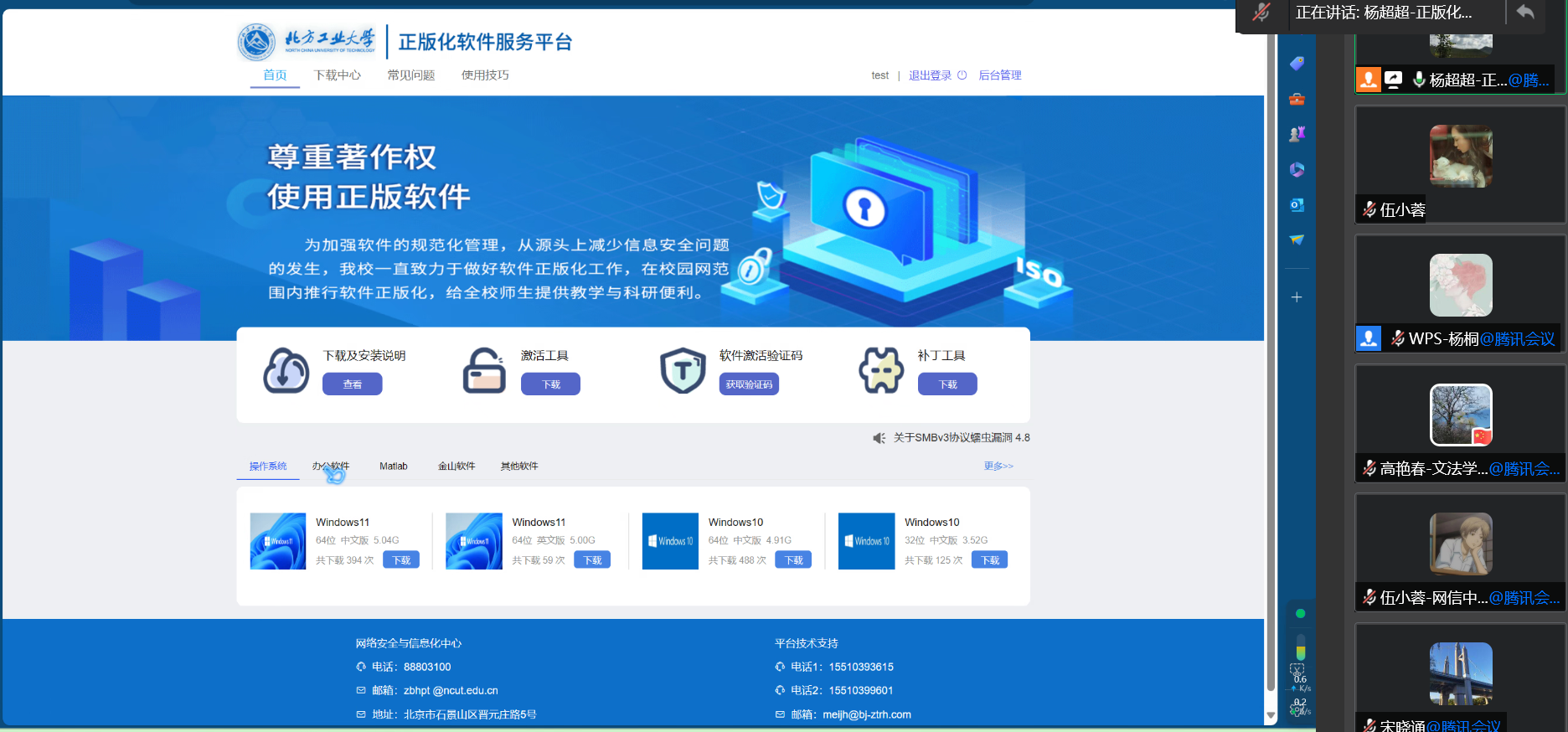 为方便师生了解国家和北京市关于软件正版化的法规、制度和管理方法,充分认识使用正版软件的重要性,更好地发挥学校“正版化软件服务平台”对教学、科研和管理工作的支持作用,3月14日,网信中心在线组织了软件正版化服务专题培训会。学校相关单位负责人、软件正版化工作联络员等参加了会议。会议主要介绍了国家及北京市实施软件正版化的相关政策要求、学校“正版化软件服务平台(http://software.ncut.edu.cn/)”的操作使用方...