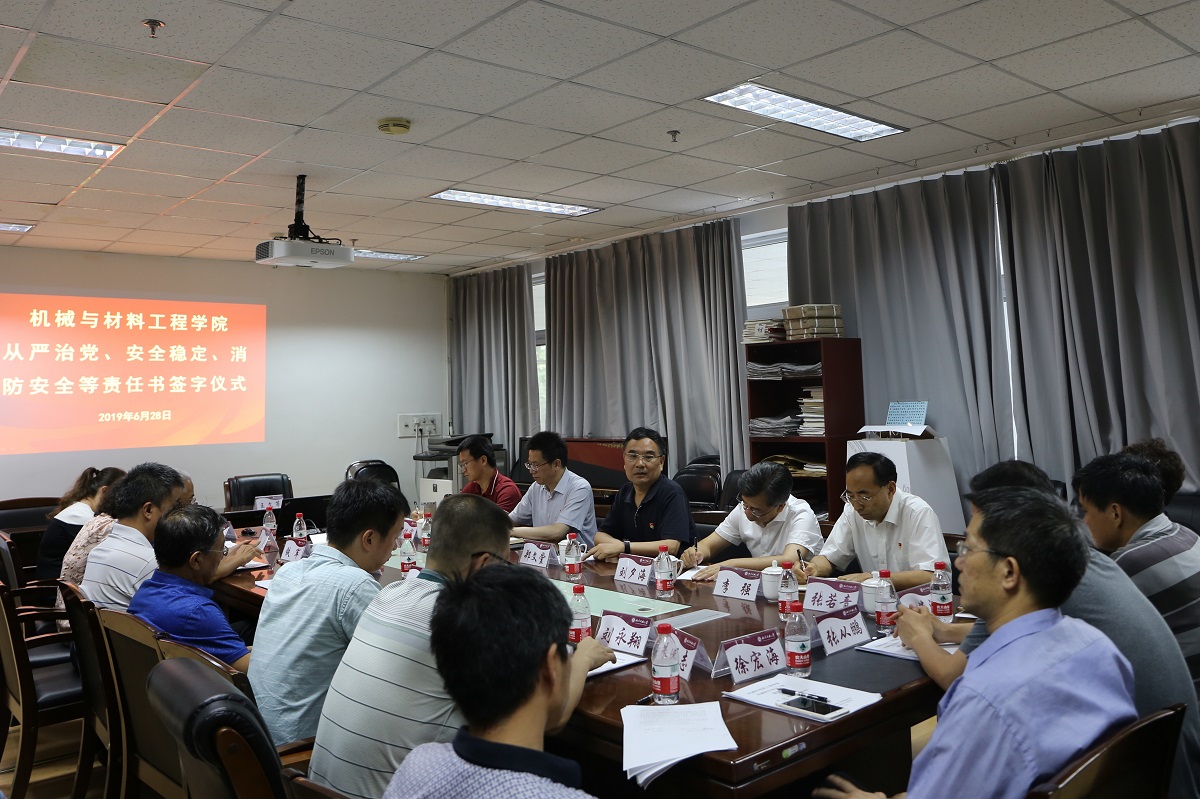 6月28日,机材学院在(博闻楼203)举行从严治党责任书暨承诺书、维护安全稳定工作责任分解任务书、消防安全责任书签订仪式。校党委书记郑文堂出席仪式,并对机材学院发展进行指导。郑文堂书记要求,机材学院工作要上水平、上层次,聚焦标志性成果,方向不改、初心不变、决心不减,在高精尖学科、博士点建设申报、第五轮学科评估、双万计划申报等工作中再创辉煌。他要求学院增强服务国家和首都北京发展战略的意识,根据...