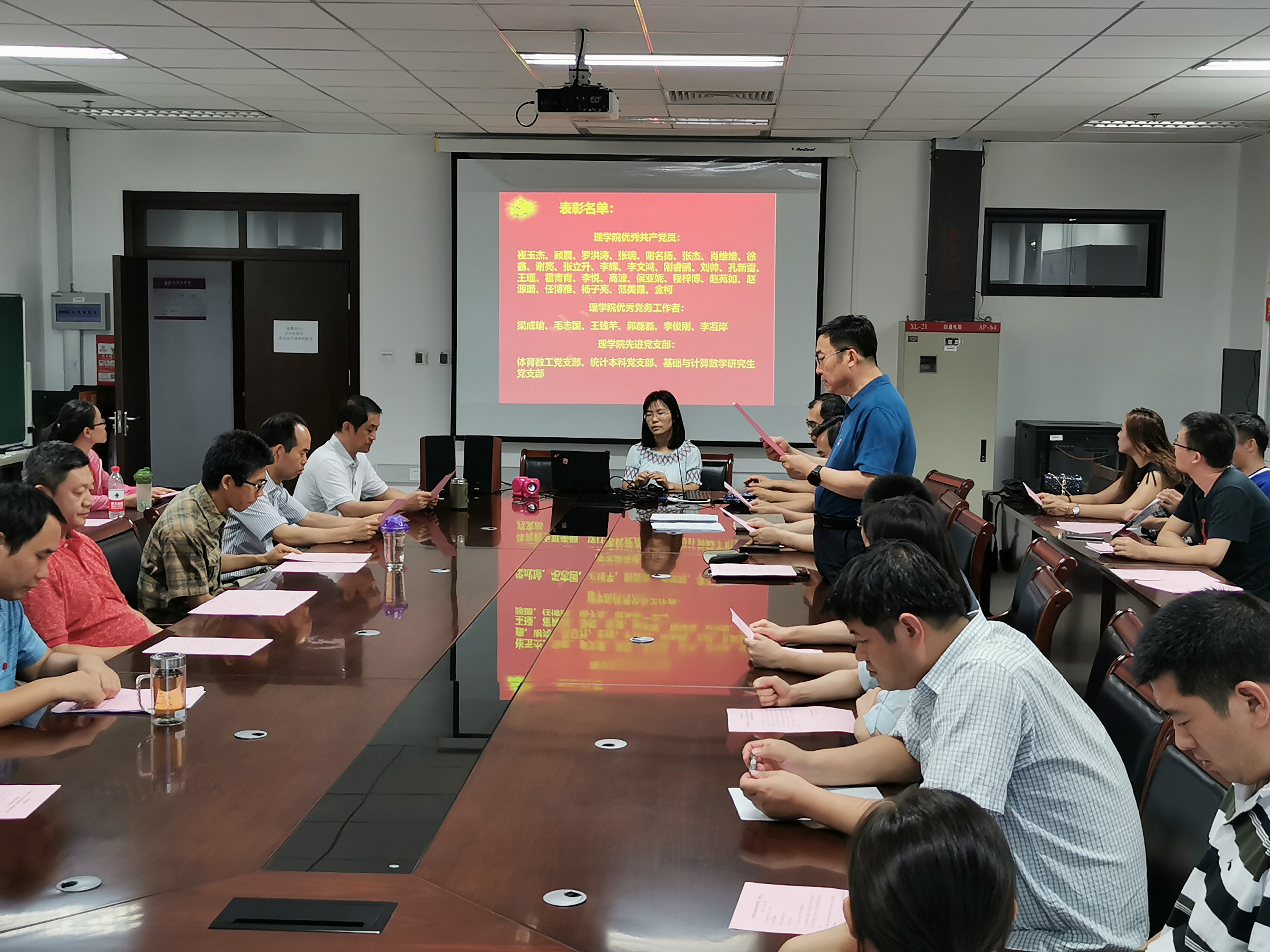 7月1日下午,理学院党委在博远楼805会议室隆重举行庆祝建党98周年暨七一表彰大会,表彰优秀党员、党务工作者和先进支部,庆祝中国共产党建党98周年。副校长王建稳、学院党委委员、学院全体党员参加了表彰会。理学院院长张建国同志宣读了《理学院党委关于表彰2017-2019年度先进党支部、优秀党员和优秀党务工作者的决定》;王建稳副校长,学院院领导为受表彰的优秀党员代表、优秀党务工作者代表和先进党支部颁奖。随后,进行了新...