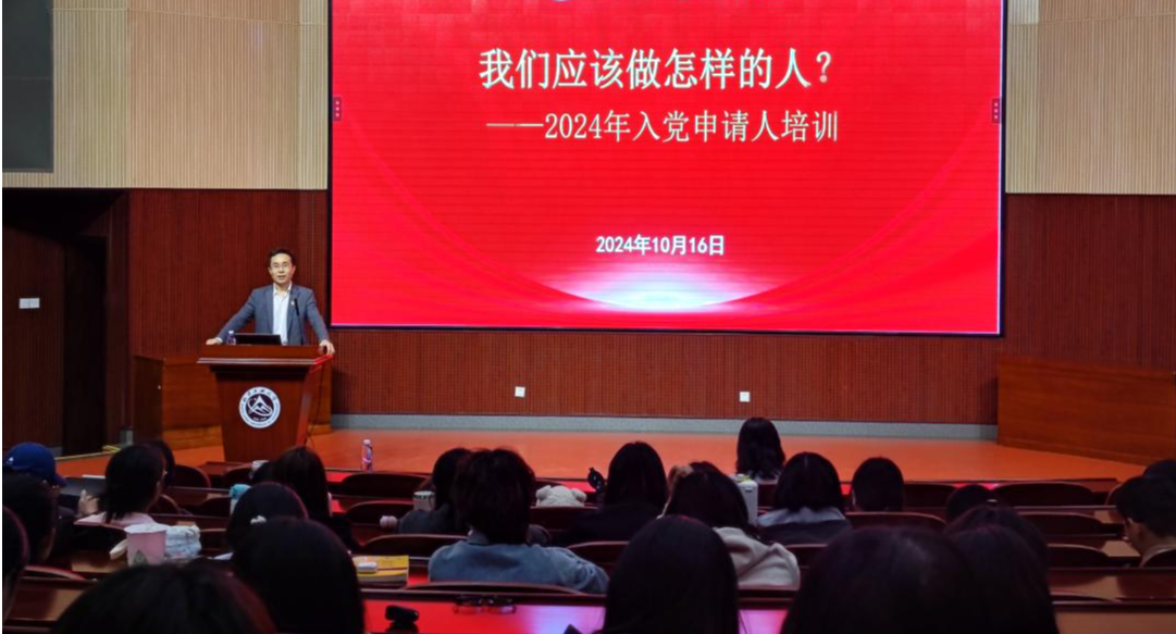 为深入学习贯彻党的二十届三中全会精神,从源头保证发展党员质量、将党员教育管理做细做实,10月16日,经管学院党委书记谢朝阳通过讲党课的形式为2024年入党申请人进行培训。学院党委副书记王帏主持会议。谢朝阳以“我们应该做怎样的人”为主题,从“我们为什么活着,我们应该怎样活着”这一哲学问题出发,告诉同学们成功和失败都是一场人生修炼,追求真正的幸福在于利他,要做一个内心强大的好人。引导同学们,要树立正确的世...