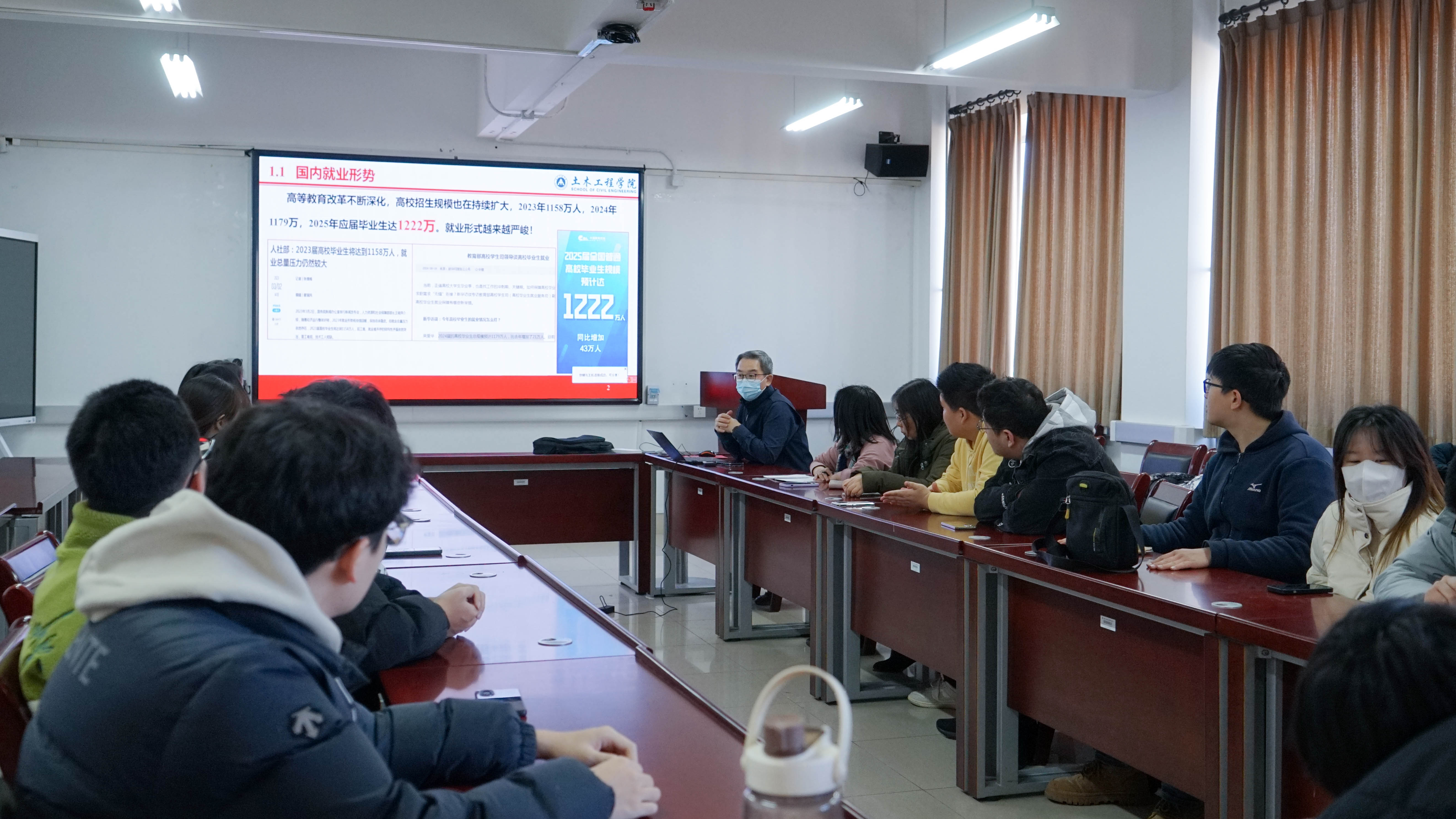 为持续推动2025届毕业生就业工作走深走实,帮助同学们认清当前就业形势、调整就业心态,以更理性的态度对待就业过程中的挑战与机遇,土木工程学院于2024年12月27日至2025年1月3日,面向2025届本科毕业生、以班级为单位召开就业工作推进会。会议由学院党委副书记冯少杰主持,毕业班班导师、就业辅导员和2025届全体毕业生参加会议。会上,冯少杰详细介绍就业政策和就业形势,分析毕业生就业面临的主要矛盾和问题,鼓励同学们及时...