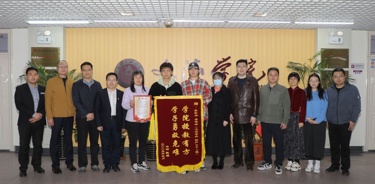 3月10日下午15时左右,学校瀚学楼内上演了一场暖心救援,一名男性保洁员突发脑供血不足晕倒,当场失去意识,口吐白沫,情况万分危急。在这紧要关头,文法学院知产24-1班陈轩宇、李博皓2位同学挺身而出,运用专业的应急救助知识采取冷静果敢的行动,为患者争取了宝贵的救治时间。3月18日,该名工作人员家属及其所属的北京山石智慧物业管理有限公司经理李毅到校为两名同学赠送锦旗和感谢信,并在瀚学楼710与两名同学进行座谈交流...