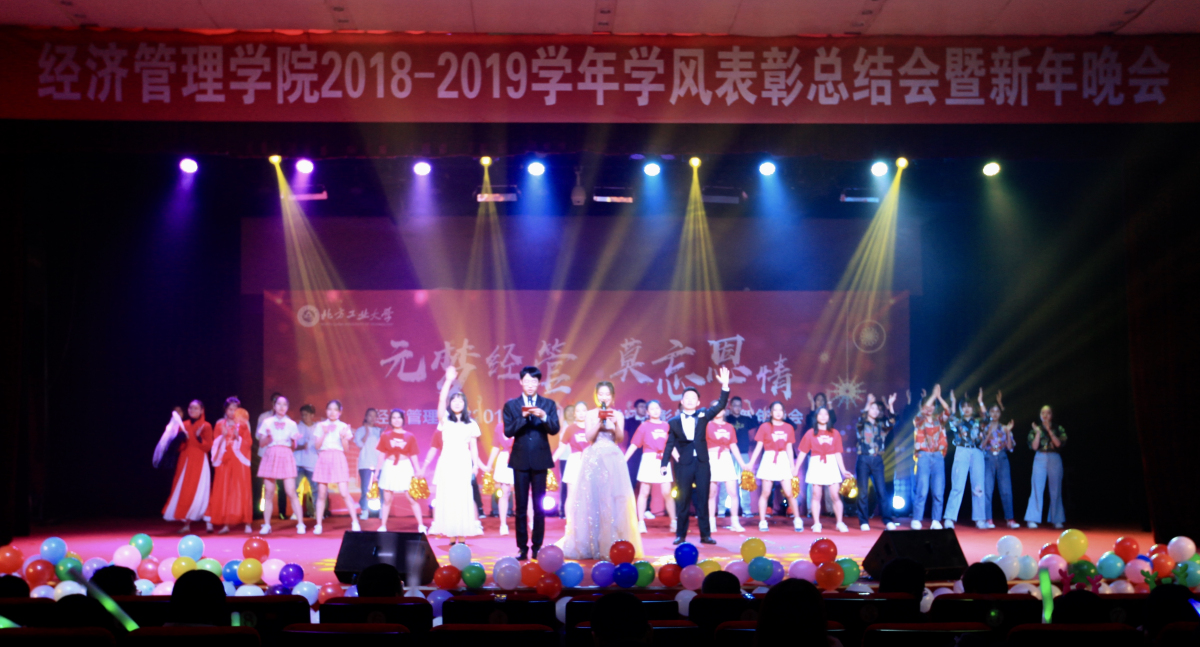 12月12日晚,经济管理学院在图书信息楼报告厅举办 “元梦经管,莫忘恩情” 2018-2019学年学风表彰总结大会暨新年晚会。学生工作部部长高国伟、经济管理学院院长赵继新、学院党委书记王伟宾、副院长陶晓波、副书记赵洁,各系主任、全体辅导员以及新生班导师共同参加了此次晚会。晚会现场,赵继新院长首先为同学们送上新年贺词,他肯定了学院全体师生在2019年中所取得的成绩,为大家积极参与国庆和冬奥相关活动所付出的努力表示感...