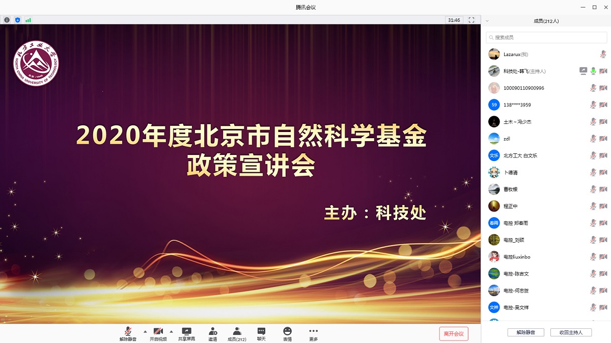6月24日上午,为进一步提升基金项目申报率和资助率,科技处组织召开了2020年北京市自然科学基金项目宣讲会。因疫情原因,本次宣讲会采用了线上会议的模式,共计210余位教师参加了本次宣讲会,会议由科技处副处长韩飞主持。会上,科技处孟庆旭首先总结了2017至2019这三年中,Beat365申报北京市自然科学基金及获得资助的情况及整体趋势。然后由科技处副处长韩飞针对本年度北京市自然科学基金项目的申请,进行了深入的政策讲解。指出...
