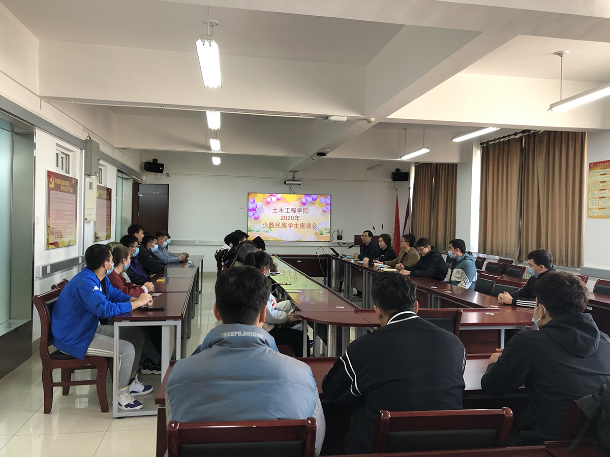 为全面了解少数民族学生的思想、学习和生活状况,进一步促进学风建设,土木工程学院于11月6日在浩学楼1103会议室召开2020秋季学期少数民族学生座谈会,学院党委副书记张少波、新疆内派教师古丽巴哈尔,学院辅导员金磊、邓晶晶和全体少数民族学生们共同参加了会议。会上,学院党委副书记张少波老师详细了解每一位与会同学的学习生活情况,他勉励大家要树立远大理想,发扬爱国情、笃定报国志、投入强国行,珍惜在校期间的大好时光...
