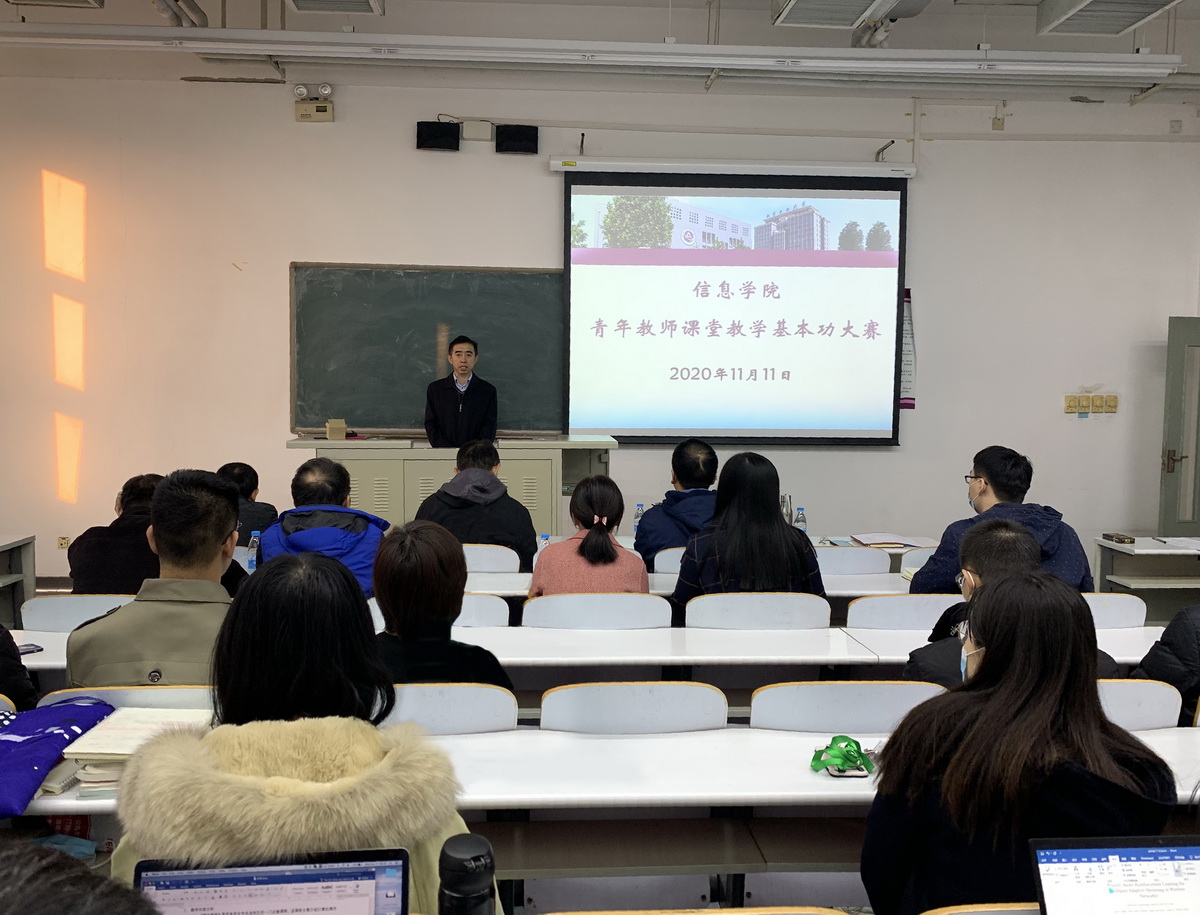 为促进青年教师练好课堂教学基本功,推进课程思政工作,改进课堂教学质量,11月11日,信息学院在瀚学楼204举行了青年教师课堂教学基本功比赛。信息学院院长马礼教授在致辞中强调了青年教师教学基本功比赛的重要性,明确了青年教师一定要重视课堂教学,希望青年教师通过比赛达到互相交流、取长补短、提高课堂教学质量的目的,并预祝参赛教师取得优异成绩。经各系初赛选拔推荐,一共有9名青年教师参加了学院的比赛,各位青年教...