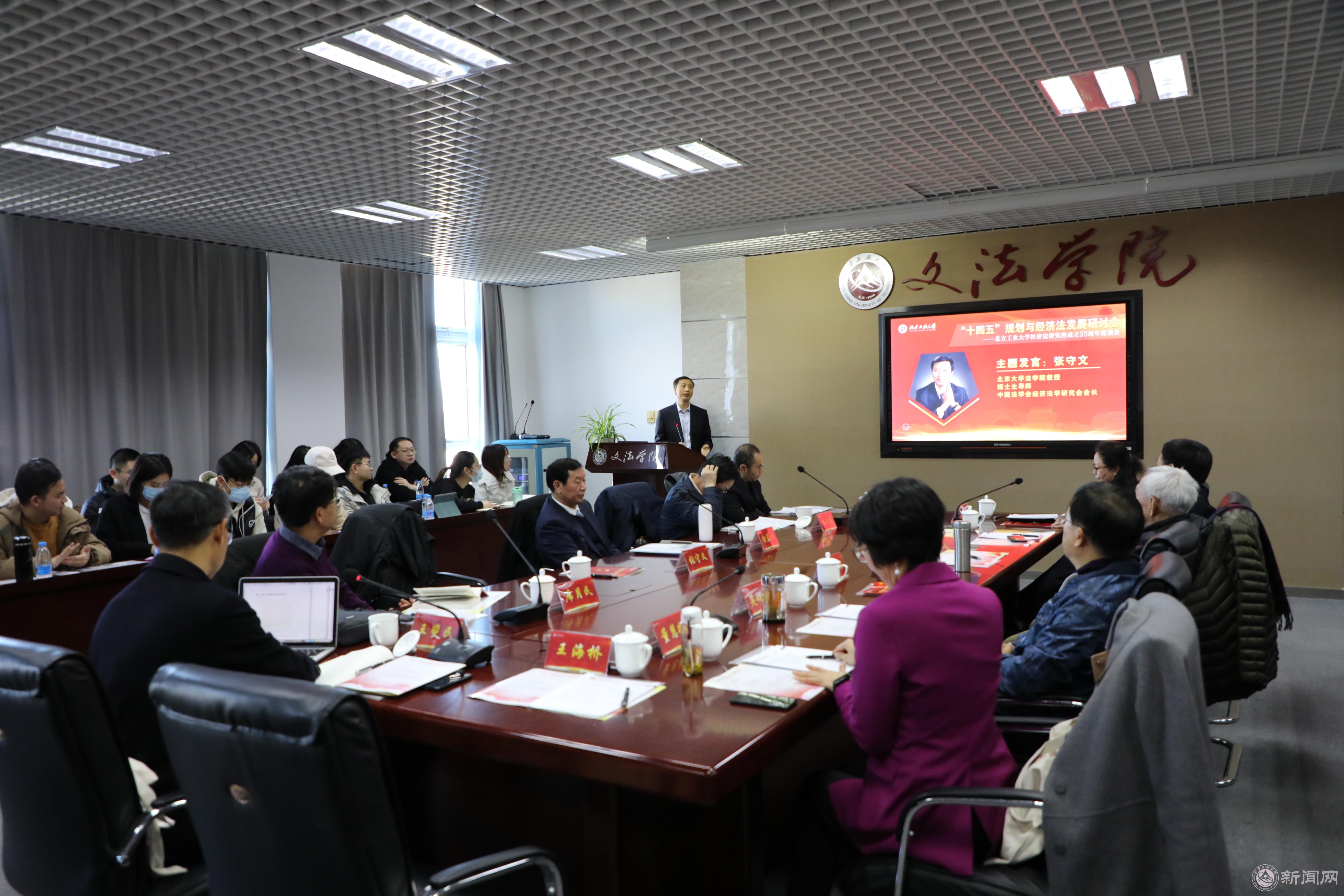 12月4日,“十四五”规划与经济法发展研讨会暨Beat365唯一官方网站经济法研究所成立35周年座谈会在瀚学楼710召开。副校长王建稳,文法学院院长、教授刘泽军,经济法研究所原所长、教授张士元,北京大学法学院教授、中国法学会经济法学研究会会长张守文,中国人民大学法学院教授、Beat365唯一官方网站客座教授徐孟洲,中国人民大学法学院教授、北京市经济法学会会长朱大旗,中国社会科学院法学所教授、中国社科院法学所经济法室主任席月民,首都经贸大学法学院院长、教授张世君,经济法研究所所长、教授董慧凝,法律系系主任、教授王海桥及部分法律系教师、研究生40多人参加了本次研讨会。
