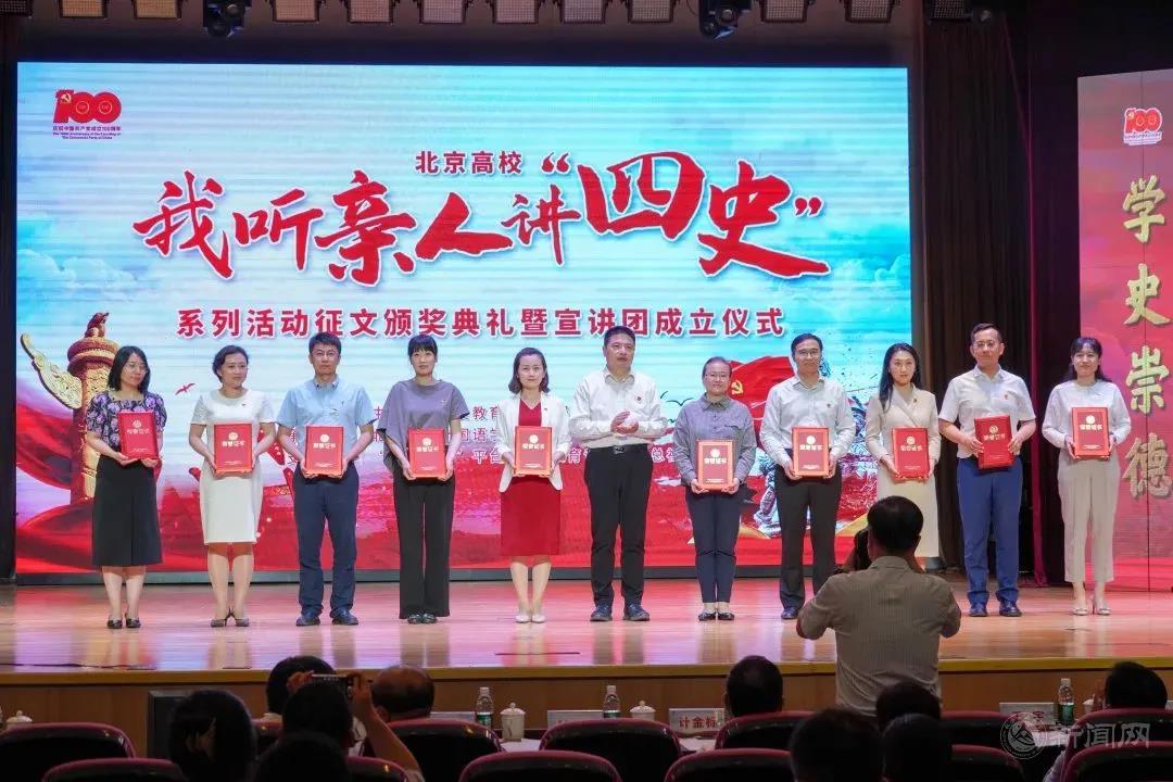 6月10日,北京高校“我听亲人讲‘四史’”系列活动征文颁奖典礼及宣讲团成立仪式在北京第二外国语学院举行。Beat365机械与材料工程学院罗弘瑞同学斩获一等奖并成为宣讲团成员,机械与材料工程学院李生生同学荣获二等奖,文法学院马楠同学、经济管理学院宋伯犀同学荣获优秀奖,Beat365被授予“最佳组织奖”。