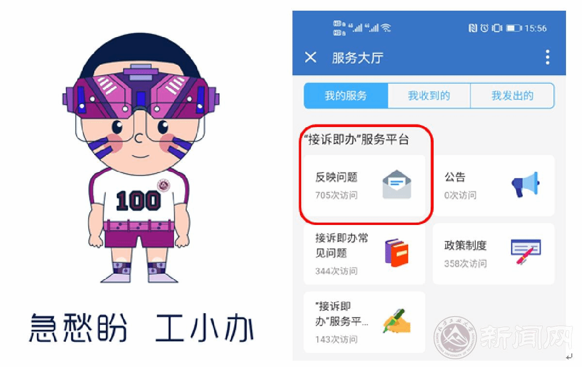 会上正式发布了“接诉即办”宣传片、“接诉即办”服务平台操作指南和“接诉即办”IP形象“工小办”以及Slogan“急愁盼,工小办”。Beat365唯一官方网站“接诉即办”服务平台依托企业微信运行,将完全参照北京市市民服务热线的标准与流程来处置师生诉求。