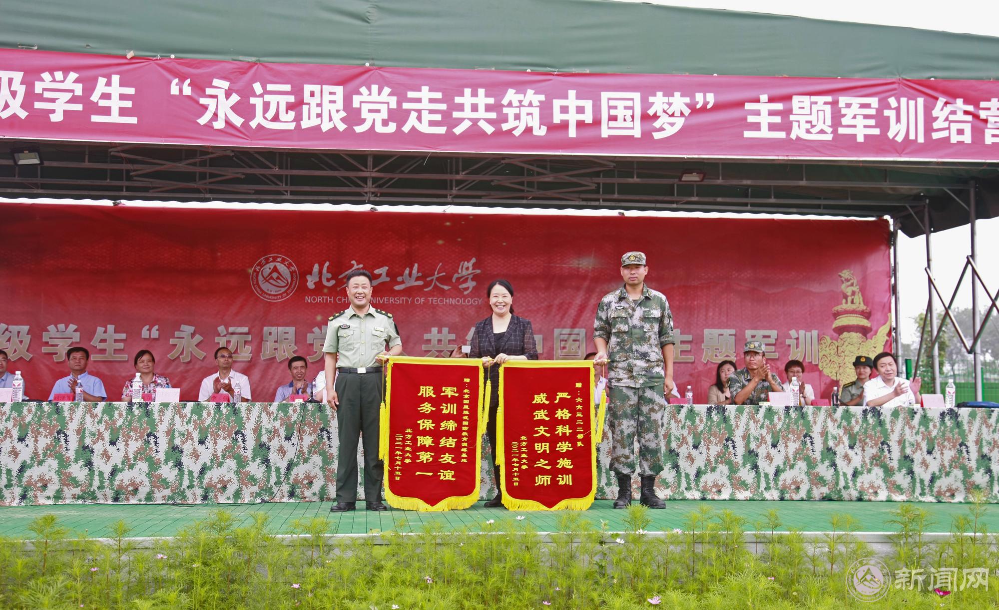 田红芳代表学校分别向军训基地、承训部队赠送锦旗。