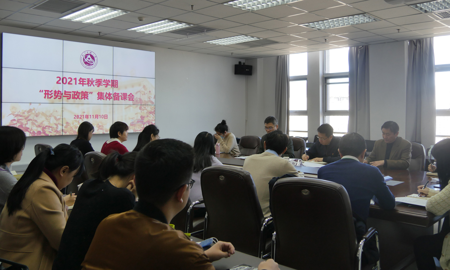 11月10日上午,校党委书记缪劲翔来到马克思主义学院,与思政课专兼职教师一道,参加了2021年秋季学期“形势与政策”集体备课会。