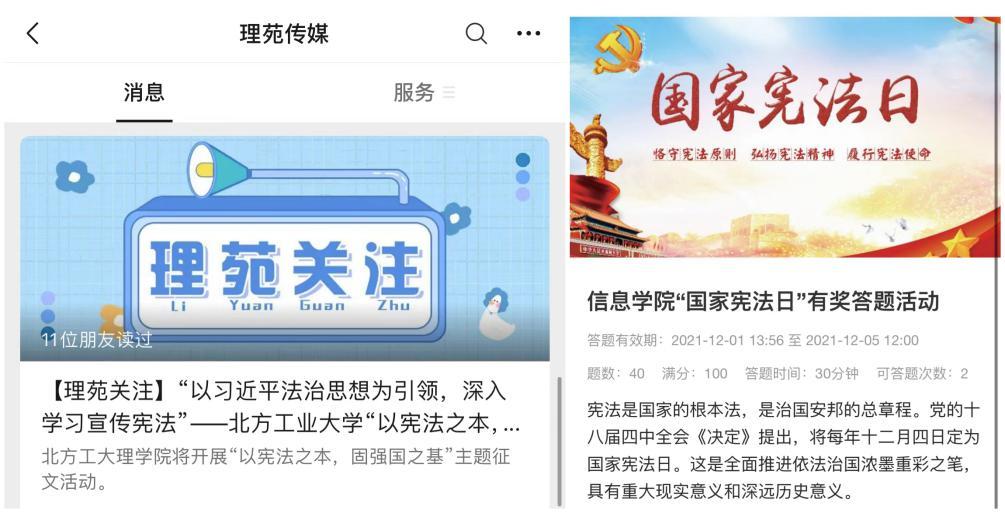 信息学院、理学院、伦敦布鲁内尔学院积极用好线上平台,开展“国家宪法日”有奖答题、“以宪法之本,固强国之基”征文活动和宪法知识线上答题挑战等活动,动员学生积极学法、懂法、守法,做宪法精神的宣传者、捍卫者。