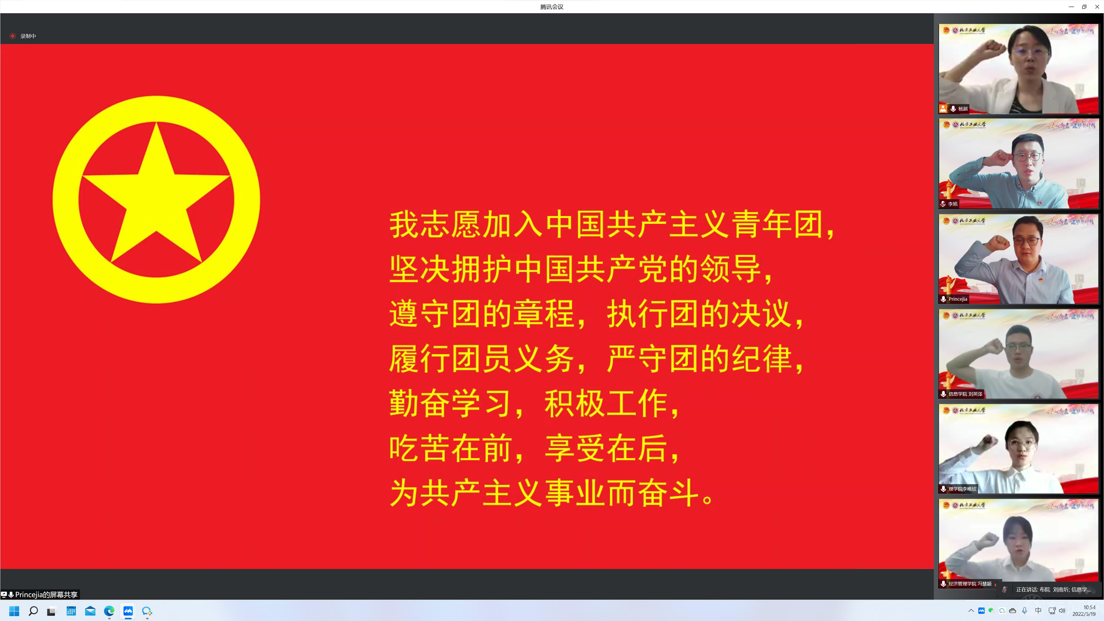 青春心向党,百年再启航。全体与会团员青年一起重温了入团誓词,展现了“清澈的爱,只为中国”的青春态度和“请党放心,强国有我”的青春誓言。青春心向党、建功新时代,学校各级党团组织、全体师生将继续认真学习领会习近平总书记的重要讲话精神,在实现第二个百年奋斗目标、实现中华民族伟大复兴的中国梦的接力赛中奋力奔跑,以优异的成绩献礼党的二十大。