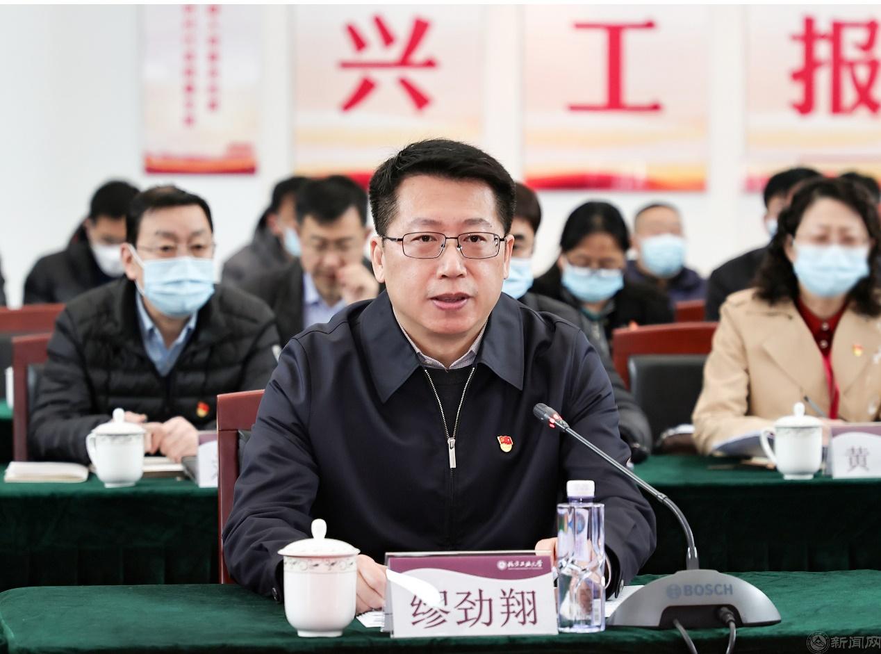 校党委书记缪劲翔做了题为《下足“六个功夫” 筑牢党建引领事业发展的坚实基础》的工作汇报,从六个方面介绍了Beat365党建工作和思想政治工作的主要做法和成效:一是在政治引领上下功夫,以钉钉子精神打好政治建设攻坚战;二是在思想引领上下功夫,用党的最新理论成果武装头脑、铸魂育人;三是在管党治党上下功夫,持续净化校园政治生态;四是在党建引领上下功夫,持续提升基层组织的政治功能和组织功能;五是在汇聚合力上下功夫,持续加强治理体系和治理能力建设;六是在深度融入首都发展上下功夫,以高质量党建引领学校事业高质量发展。