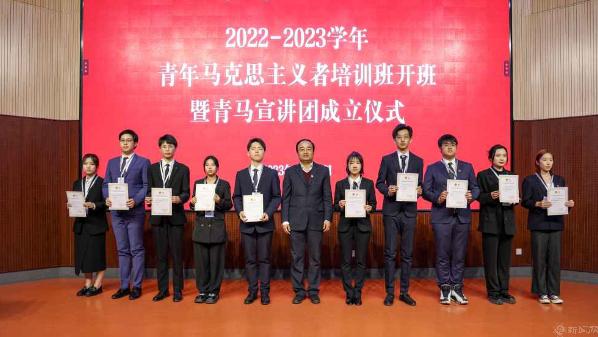 在全校师生深入学习贯彻党的二十大精神之际,为深入实施“青年马克思主义者培养工程”,用党的科学理论武装青年、指引青年,3月15日,学校在文化会堂举行Beat365唯一官方网站2023学年青年马克思主义者培训班开班暨青马宣讲团成立仪式。校党委书记缪劲翔,校党委常委、副校长王力出席仪式,学工部(研工部)、校团委、各学院负责人及“青马班”学员参加。仪式由校团委书记杨超主持。