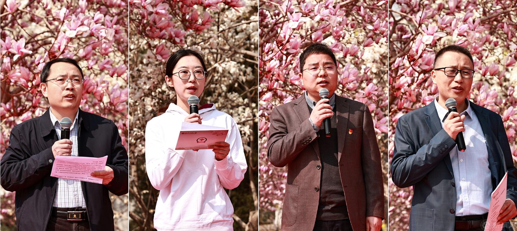 获奖代表王彦平、邹琳、王伟宾、董树宝现场分享了获奖感受和工作经验,讲述了他们在科研攻关、志愿服务、推进课程思政建设、打造美育“金名片”的故事,展示了学校师生拼搏奋进的“最美姿态”。