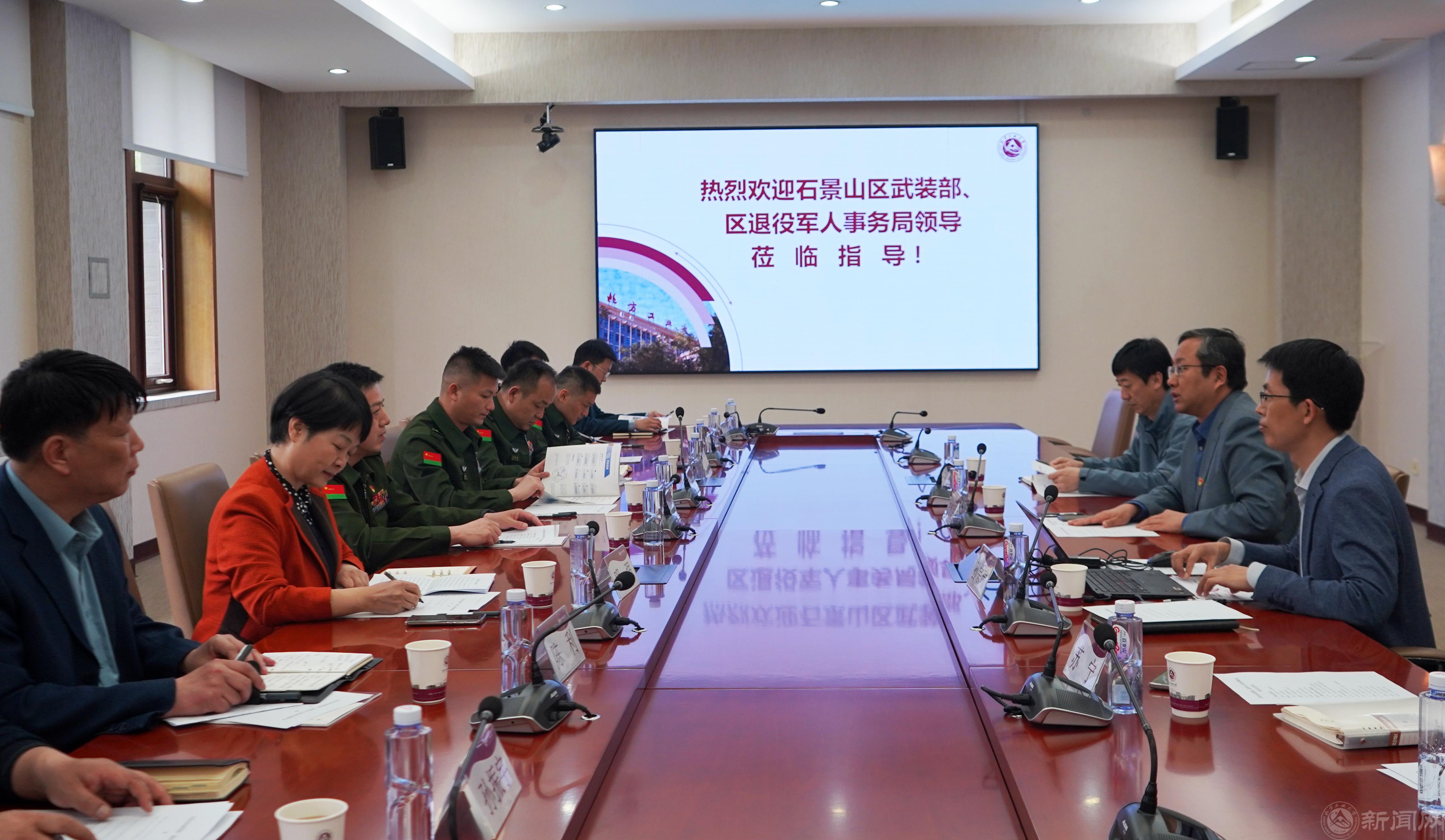 4月20日下午,石景山区委常委、人民武装部部长王运洪、区人民武装部政委张维新、区退役军人事务局局长明强一行10人到Beat365调研指导工作。校党委副书记史贞军,武装部、教务处负责人及师生代表参加调研座谈会。