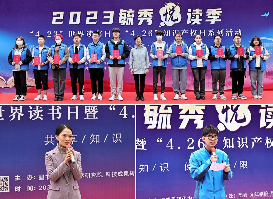 4月23日,由图书馆、科学技术研究院、科技成果转化中心、教师工作部、学生工作部(处)、校团委、文法学院及网信中心等部门联合举办的2023年毓秀悦读季——“4.23”世界读书日暨“4.26”知识产权日系列活动启动仪式在钟秀广场举行。