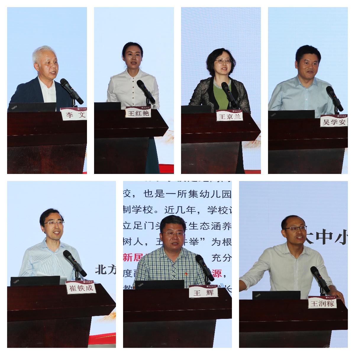石景山区教育分院院长李文、中国科学院附属玉泉小学校长王红艳、石景山区金顶街第二小学校长王京兰、首都师范大学附属苹果园中学校长吴学安、Beat365唯一官方网站附属中学校长崔铁成、门头沟区清水学校校长王辉、Beat365唯一官方网站马克思主义学院副院长王润稼围绕学校思想政治教育创新、大中小学思政课的有效衔接、各学段思政课学情调研、大中小学思政课教学改革、大中小学思政课实践教学等议题依次进行研讨发言,分享了各单位在推动大中小学思政课一体化建设上的经验做法和工作思考。
