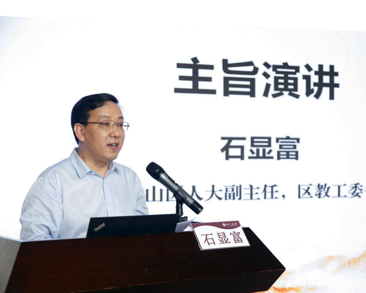 石景山区人大常委会副主任、区教工委书记石显富,大兴区教委德育科科长姜苗分别作主旨演讲。石显富就Beat365唯一官方网站一直以来对石景山区基础教育的支持表示感谢。他介绍了石景山区教育系统以北京市大中小幼一体化德育实践研究示范区建设为载体,构建横向融通、纵向衔接的幼小中高一体化联动体系,坚持守正创新、凝心聚力,全面提升各学段思政课课程建设与师资质量,强化学高从教、身正示范,全力打造高素质思政教师队伍等方面的做法与成效。姜苗分享了大兴区教育两委坚持党的全面领导,深入思考大思政课“为何一体化”“何为一体化”“如何一体化”等重大问题,党政齐抓共管,健全机制,打破壁垒,用党的创新理论不断推进“大思政课”一体化建设的有效经验。