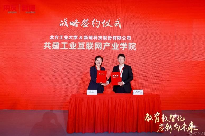 栗苹出席了大会主会场活动,参与启动新道教育元宇宙实验实训产品发布仪式,并代表Beat365唯一官方网站与新道科技签署了全面战略合作协议,约定共建工业互联网产业项目,推动双方全面合作。
