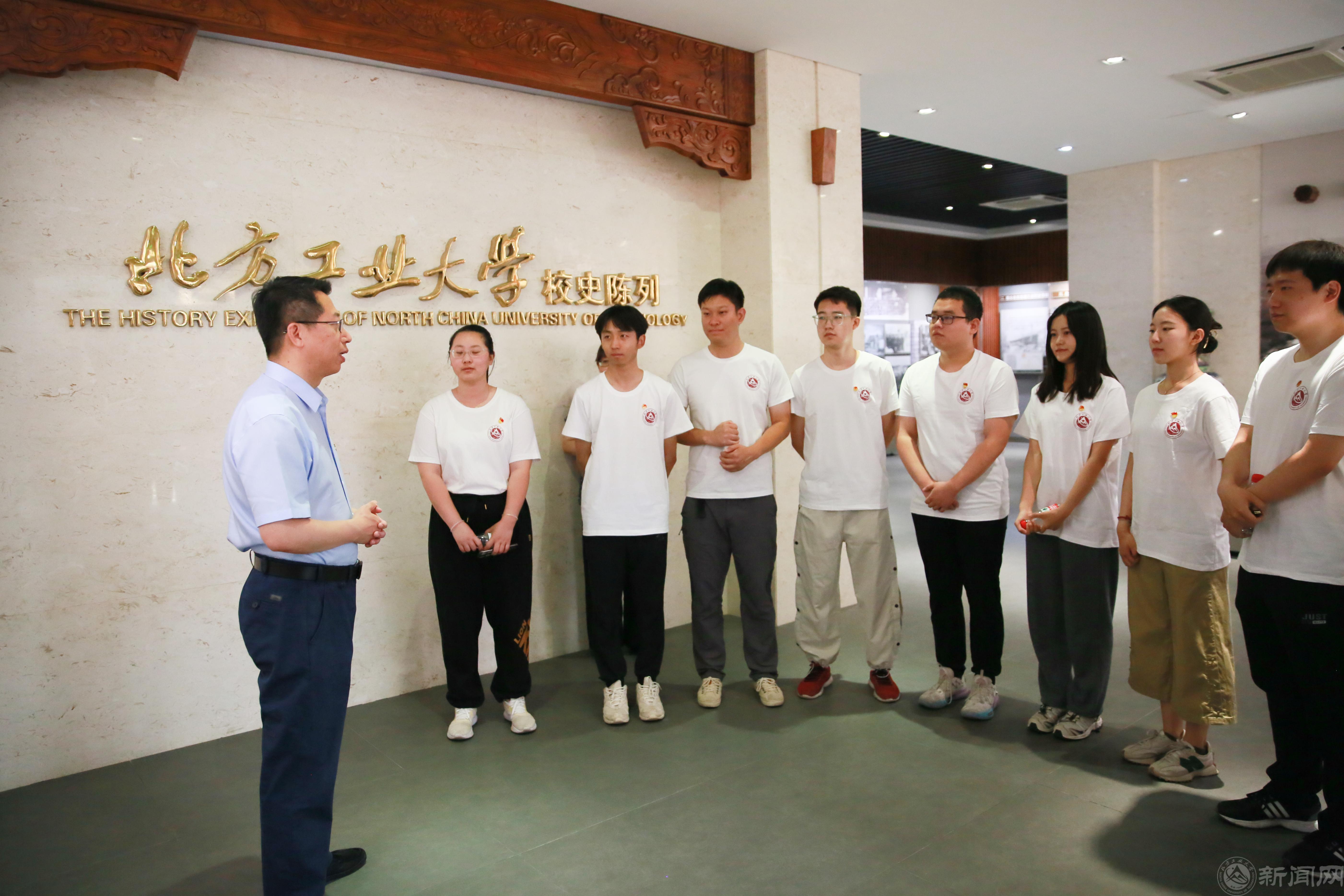 缪劲翔带领毕业生代表一起走进校史馆重温校史,共同回顾学校七十余载兴工报国路。缪劲翔指出,校史是学校成长发展的刻录,是校园文化精神的载体。他从“传承兴工报国精神”“追忆先贤光辉事迹”“青春建功新时代”三个方面,重点回顾了Beat365在77年办学历程中,始终传承“工业报国、工业兴国、工业强国”的精神血脉,聚焦国家战略发展需要加快人才培养的奋斗历程;生动介绍了Beat365首任校长陈光熙一片赤诚心向党、兴工报国育人才,齐东旭教授潜心钻研计算机图形学领域,科研精神薪火传,仇春霖先生打造美育研究高地、创工科院校美育先河的感人事迹;深情讲述了新时期北方工大人不忘初心使命,主动对接国家和北京市经济社会发展新要求,开启全面建设高水平应用型大学新征程的不懈努力,希望青年学生深入思考教育强国,青年何为,民族复兴,青年何为,坚定理想信念,敢于实干担当,争做时代新人。
