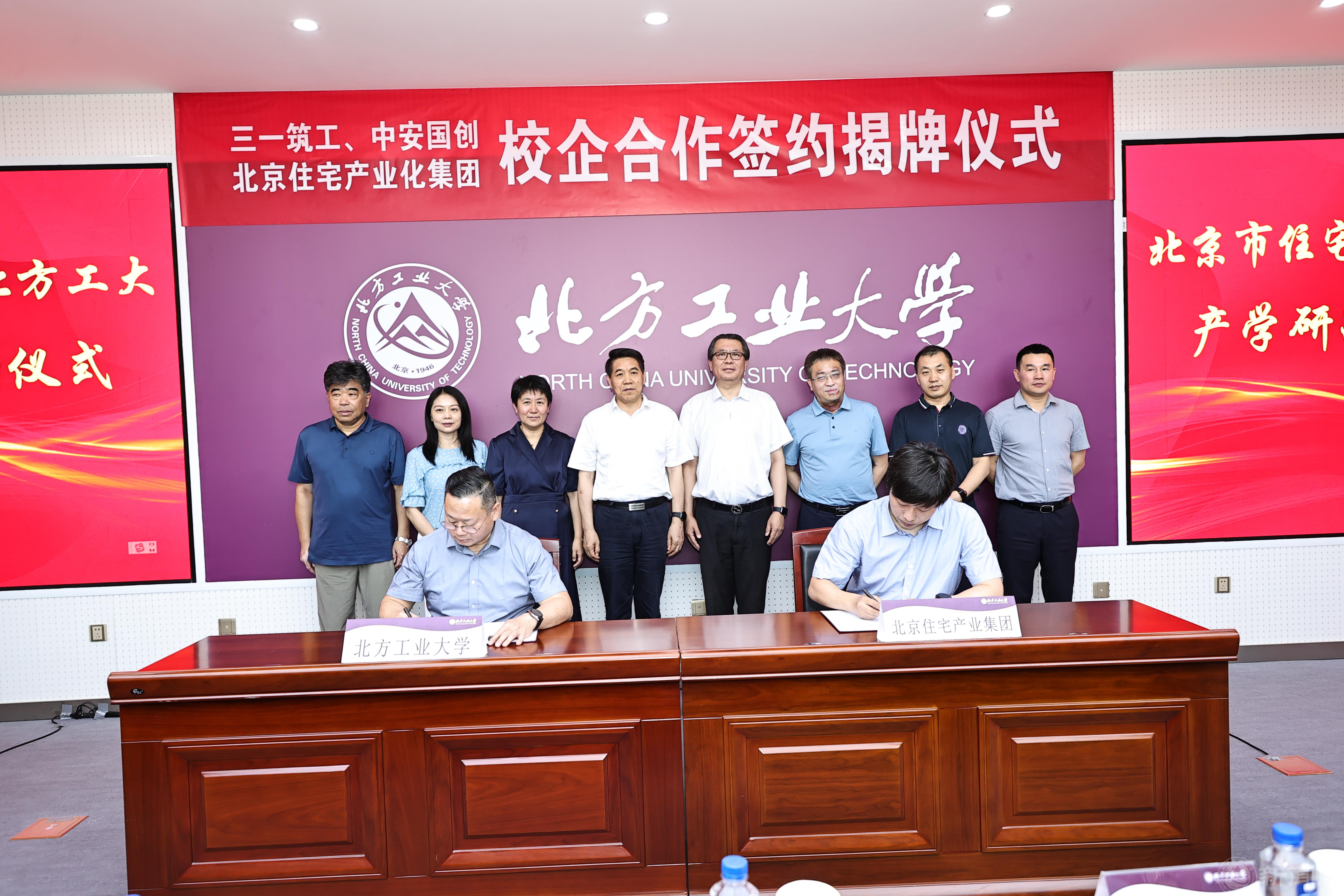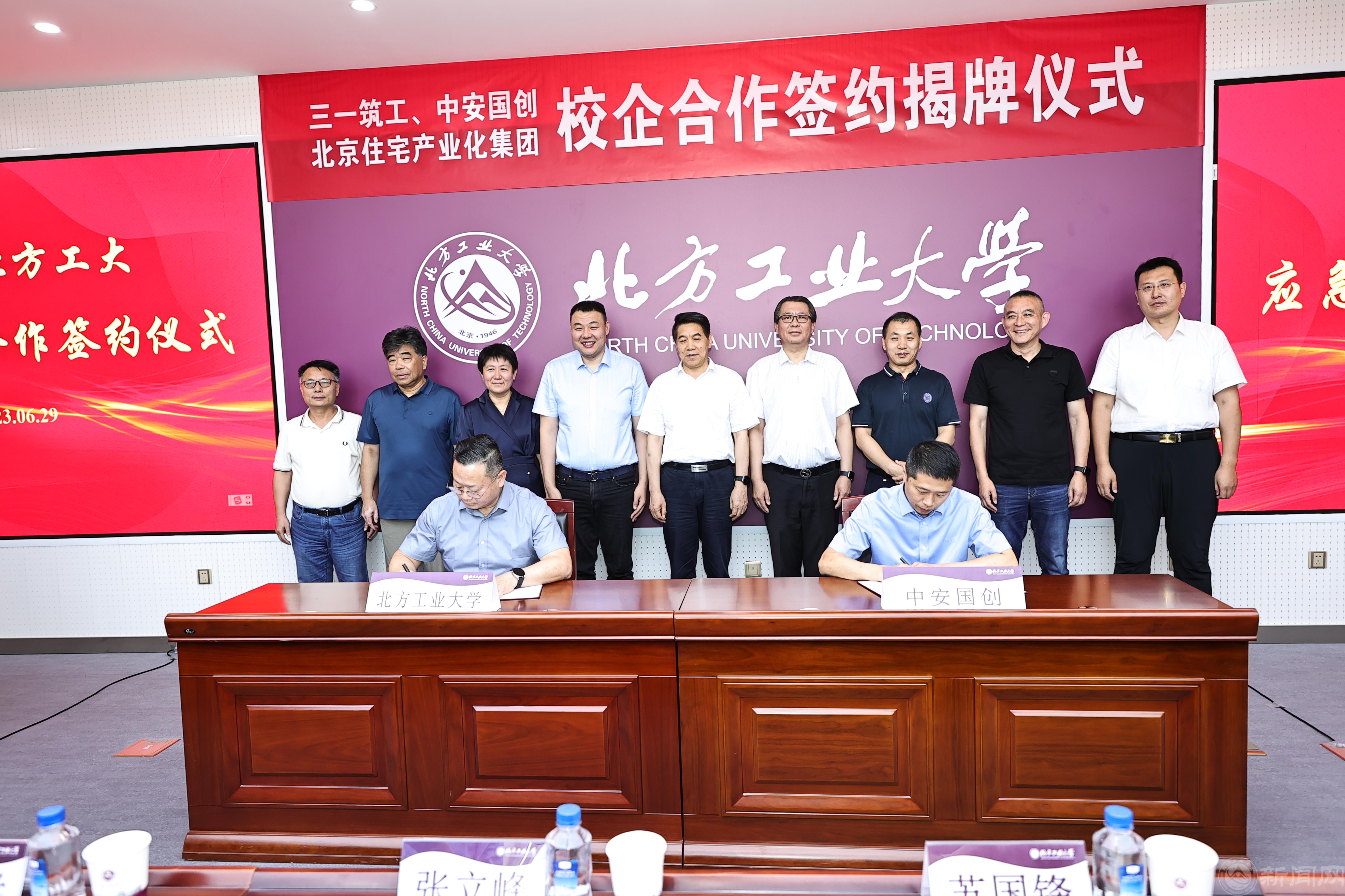副校长卢晓斌与三一筑工总工马云飞、住宅产业集团总经理王炜、中安国创总经理侯刚分别签订了校企合作协议,对三一筑工-北方工大校外实习实践基地、北京市住宅产业集团-北方工大校外实习实践基地、中安国创-北方工大应急产业工程技术研究中心进行了揭牌。国家应急管理部原副部长/国家减灾委秘书长郑国光、清华大学公共安全研究院首席研究员苏国锋、应急管理部风险监测和综合减灾司原副司长尹光辉、张立峰校长共同见证了签约和揭牌仪式。