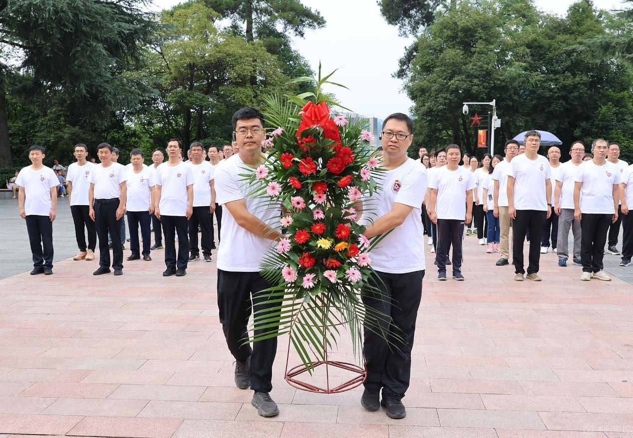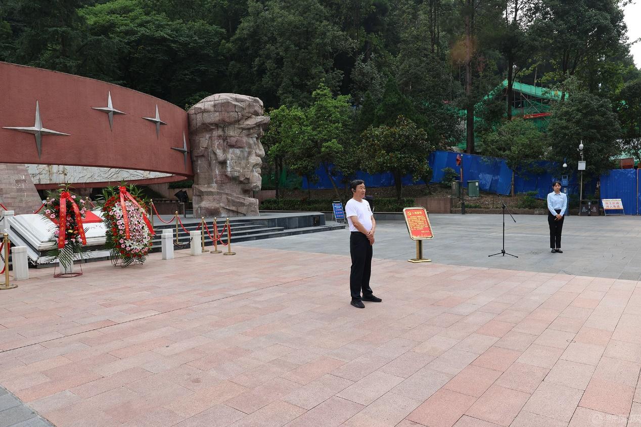 培训班学员首先来到遵义红军山烈士陵园,瞻仰红军烈士纪念碑,敬献花篮,缅怀长征英烈,并在史贞军副书记的带领下重温入党誓词。青山有幸埋忠骨,英烈精神永传承,铮铮誓言在绿树青山中回荡,学员们受到深刻的精神洗礼。
