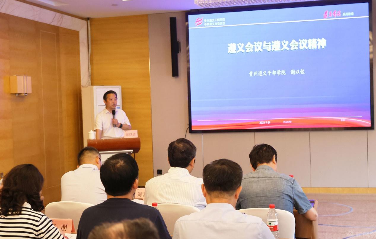 遵义市委党校副校长谢以佐以《遵义会议与遵义会议精神》为题为学员做专题讲座,从“为什么召开遵义会议”“遵义会议是怎么召开的”“怎样弘扬遵义会议精神”三个方面对遵义会议精神进行深入阐释,从微观、中观、宏观层面分析遵义会议精神的内涵,并引导学员从“党的自我革命”视角深化对遵义会议精神的认识。