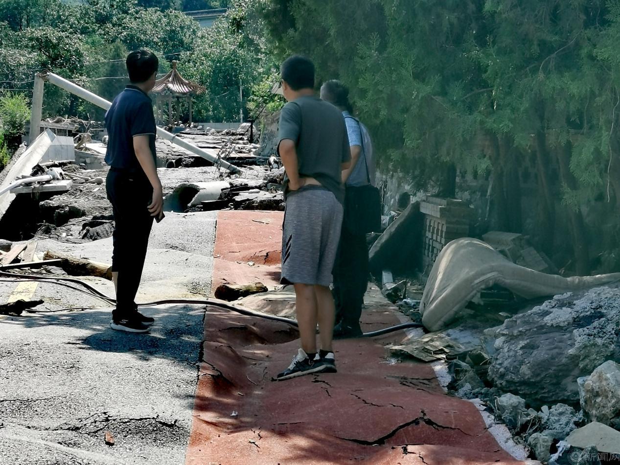 团队出发的当日,通往王平镇的交通刚刚基本修复,路边的淤泥仍有一米多深,武警官兵在紧张地修复公路和受损房屋,道路两旁疏松的山体不时会有泥土和孤石落下。受洪灾破坏严重的村庄让团队成员备感沉重,大家纷纷表示要用专业知识和科技手段,加快推进受灾地区重建,重现门头沟昔日绿水青山的风采。