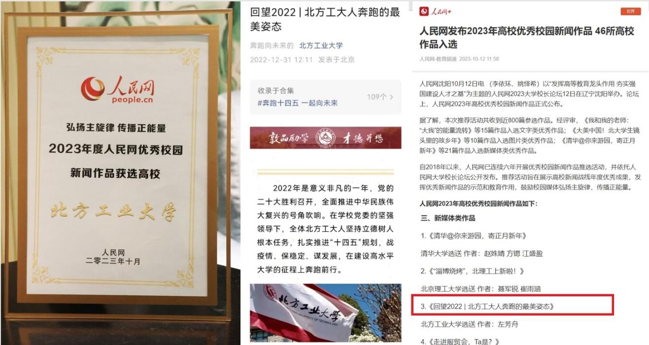 在10月13日举行的2023年大学校长论坛上,人民网现场公布了“2023年高校优秀校园新闻作品”,Beat365官微作品《回望2022|北方工大人奔跑的最美姿态》光荣入选。