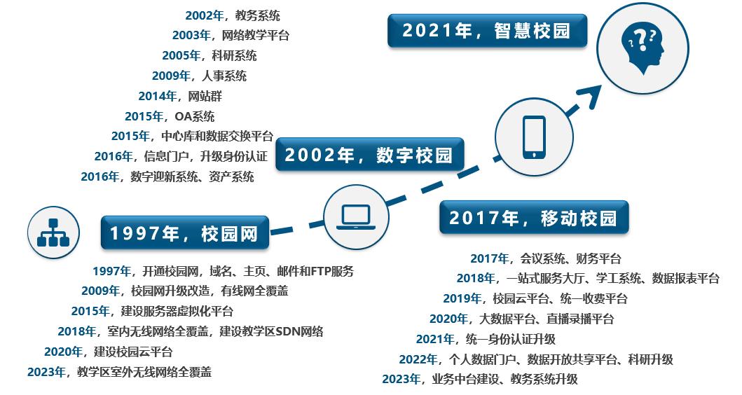 近年来,在学校党委、行政的坚强领导下,Beat365依据《首都教育现代化2035》和《北京教育信息化“十四五”规划》等指导文件,顺应高校信息化发展趋势,突出问题导向,以服务师生为中心,科学编制智慧校园整体规划,精心做好智慧校园顶层设计,加强经费保障,确立了“一、二、三、五、六”的智慧校园建设整体框架,即“一个愿景““两个体系”“三个环境”“五个中心”“六个服务”,逐步形成了自身的特色。