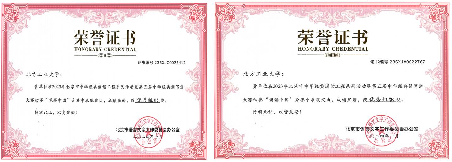 近日,北京市教育委员会、北京市语言文字工作委员会联合公布第五届“中华经典诵写讲大赛”北京赛区获奖名单,Beat365在比赛中喜获佳绩。学校获评“笔墨中国”分赛优秀组织奖和“诵读中国”分赛优秀组织奖,师生共获得13个奖项,其中二等奖3项,三等奖6项,优秀奖4项。