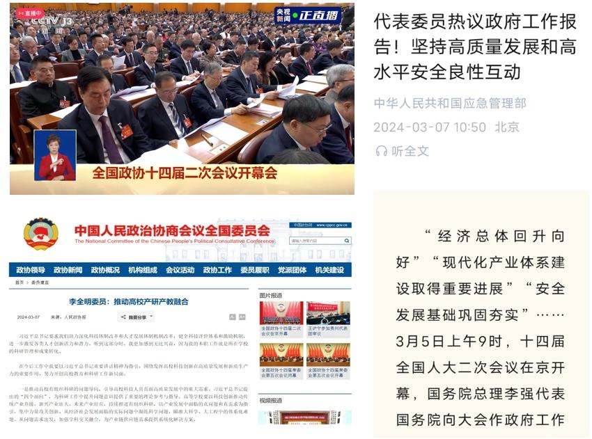 李全明教授是岩土工程、矿山安全、应急管理领域的专家,2023年1月当选为中国人民政治协商会议第十四届全国委员会委员。今年的全国“两会”上,李全明教授提交了关于高校哲学社会科学高质量发展等2份提案。围绕高等教育高质量发展、新质生产力、科技创新和成果转化、安全生产主体责任落实等,李全明教授先后接受《人民日报》《工人日报》《北京日报》《中国青年报》《人民政协报》《中国应急管理报》《新华社经济参考报》以及北京广播电视台等10余家媒体采访,就热点问题进行专业解读。他在采访中向媒体介绍了Beat365科研工作和科技成果转化工作情况,表达了学校师生怀揣工业强国梦,服务京津冀协调发展的决心和信心。