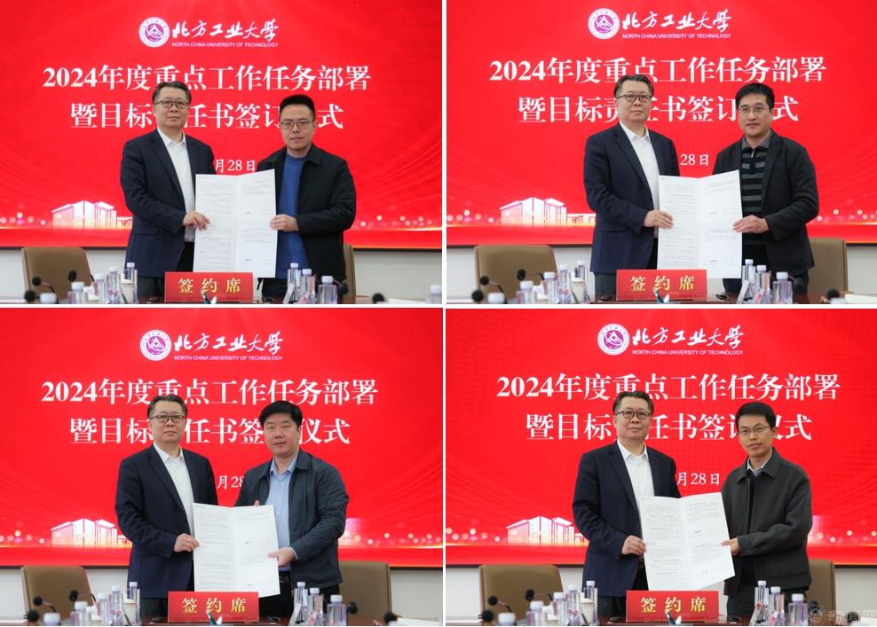 党委副书记、校长张立峰分别与信息学院、机材学院、建艺学院、土木学院、经管学院、文法学院、理学院等7个学院院长,以及人事处(教师工作部)、教务处、科研院(科技成果转化中心)、研究生院、学工部等5个职能部门负责人签订了工作目标责任书。