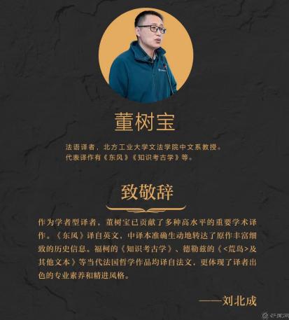 董树宝教授主要从事西方文论、法国当代批评理论的研究与翻译工作,讲授《西方文论》《大学美育》等课程,在《文艺研究》《外国文学》《哲学动态》等权威刊物发表论文多篇,主持国家社科基金项目2项、省部级项目3项,参与国家社科基金重大项目2项、国家社科基金重点项目1项,专著有《影像的叛逆:法国当代哲学的艺术之思》,译著有《意义的逻辑》(法译汉)、《知识考古学》(法译汉)、《 <荒岛> 及其他文本》(法译汉,合译)和《对话》(法译汉)、加《混沌互渗》(法译汉)、《东风:法国知识分子与20世纪60年代的遗产》(英译汉)等。