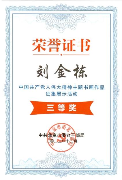 在北京市委老干部局举办的中国共产党人伟大精神主题书画作品征集展示活动中,Beat365退休老同志王立昭、刘金栋荣获三等奖。