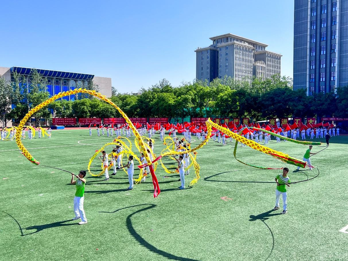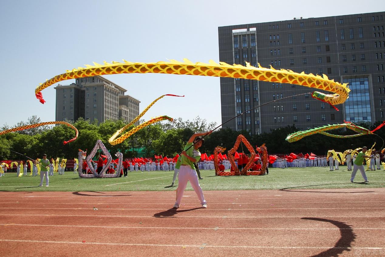 开幕式上,师生联袂进行了太极拳、大旗舞、舞龙表演,打造了一场视觉盛宴。