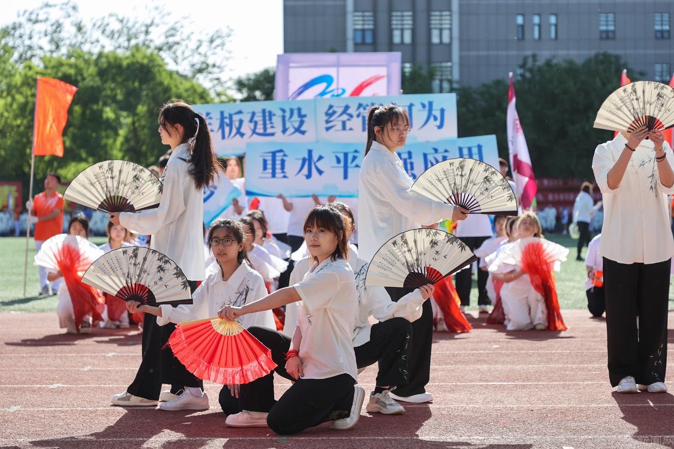经济管理学院方队,传承非遗文化,功夫扇、空竹表演刚柔相济、魅力四射