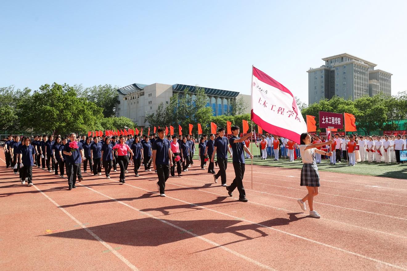 土木工程学院方队,用矫健步伐踏出青春活力,用自信的微笑迎接重重挑战