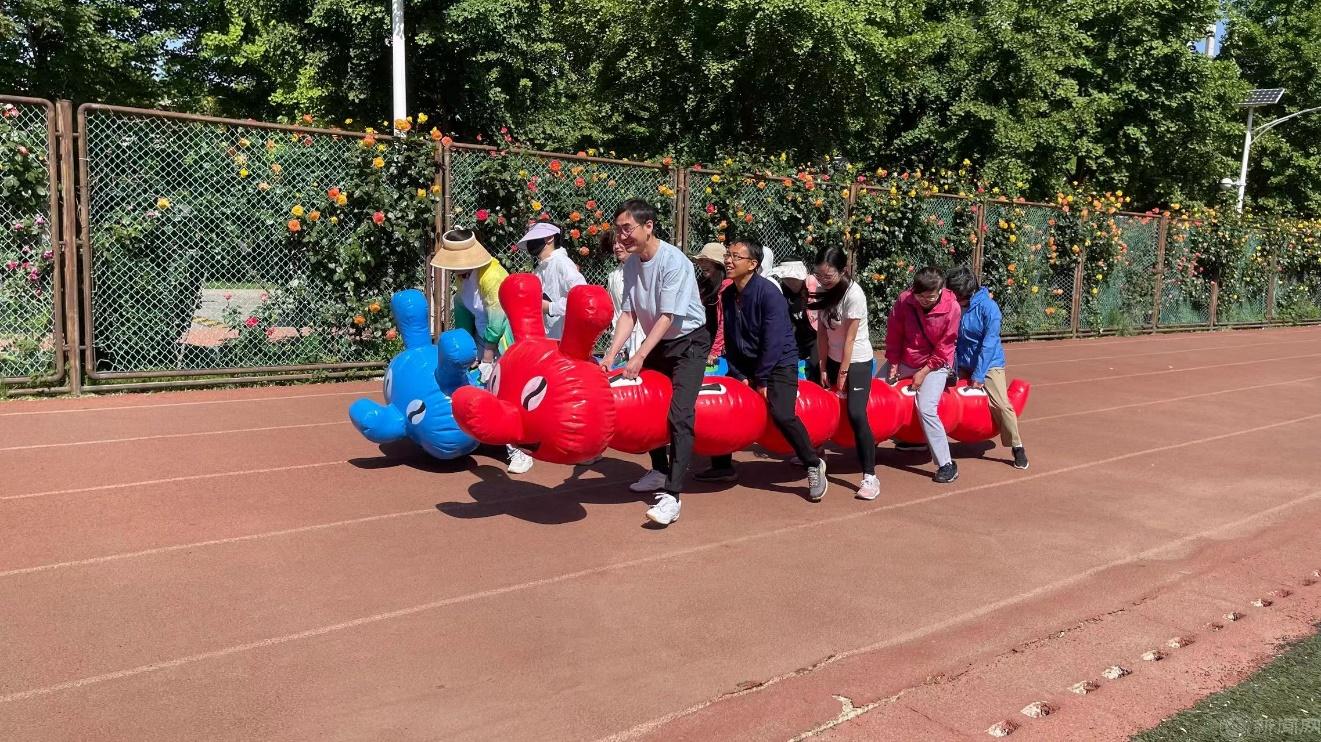 在趣味运动项目中,师生通过有趣的比赛放松身心、强健体魄,更好地放松休息,以更加昂扬的精神状态投身到未来的工作和学习中,现场气氛热烈、笑语连连。